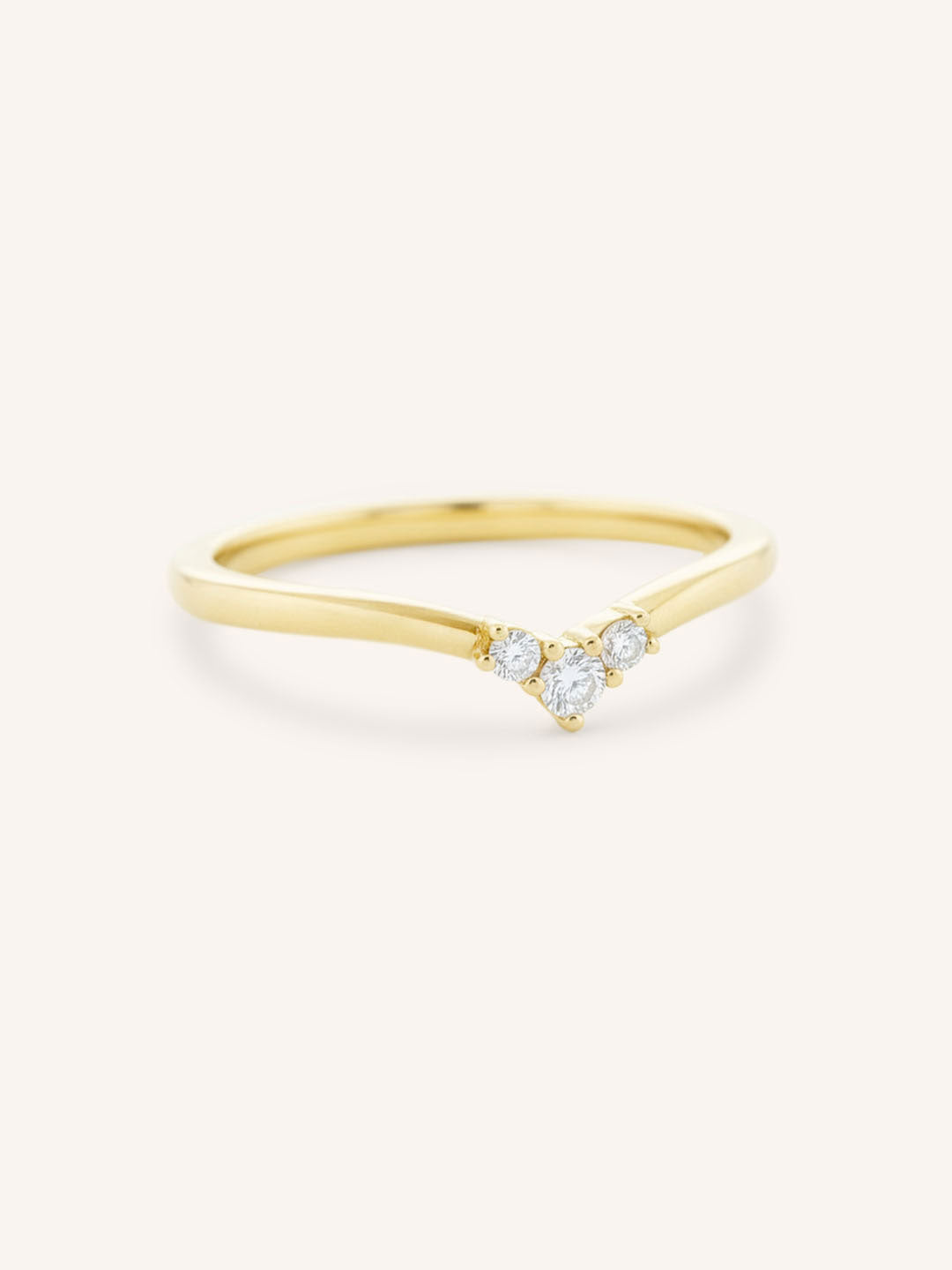 The Linden Curved Diamond Band offers a graceful contour that beautifully complements any engagement or wedding ring. Its curved design ensures a seamless fit, while the sparkling diamonds add timeless elegance. This band is a thoughtful choice for those seeking both comfort and lasting beauty in their jewelry.