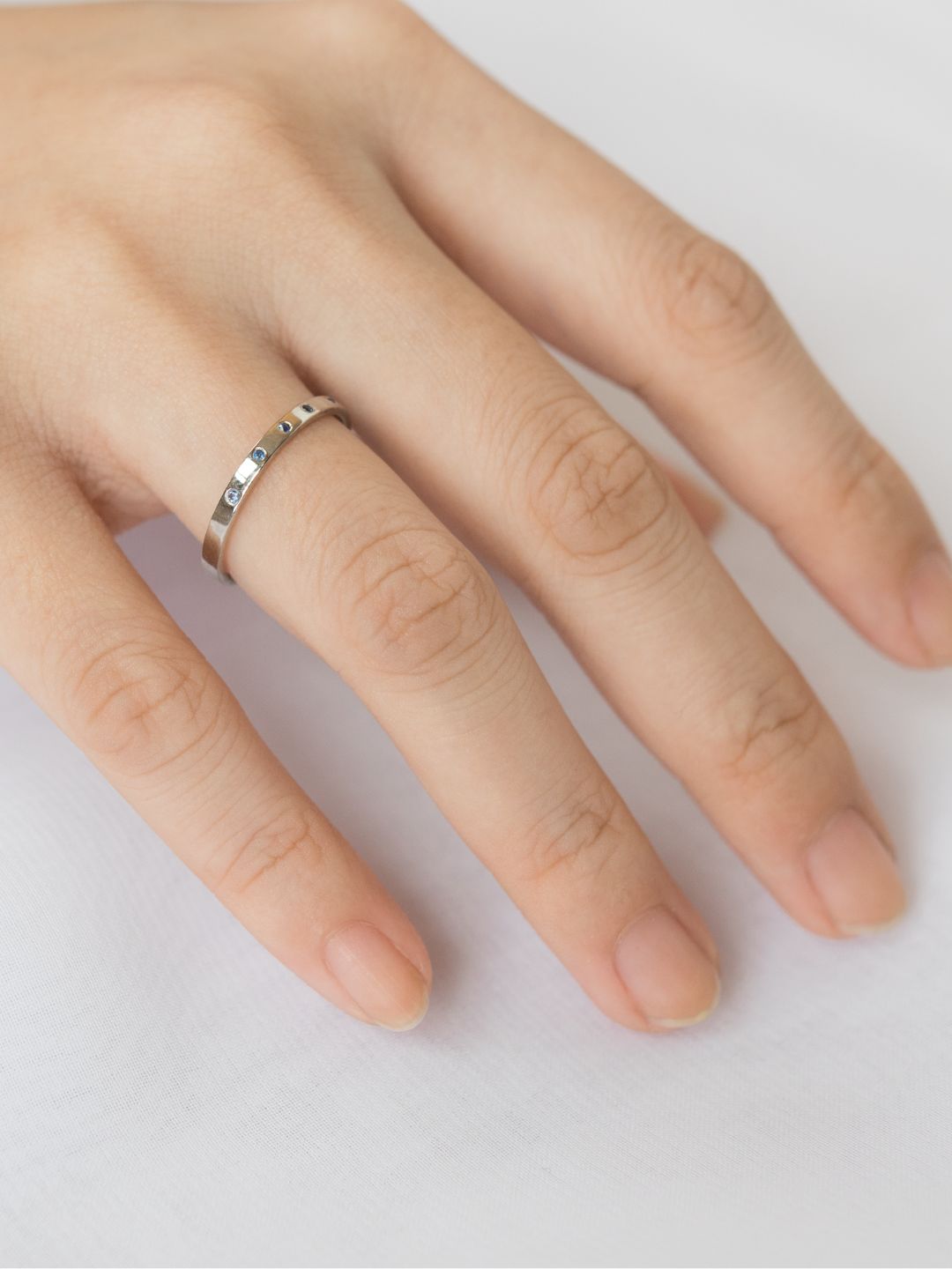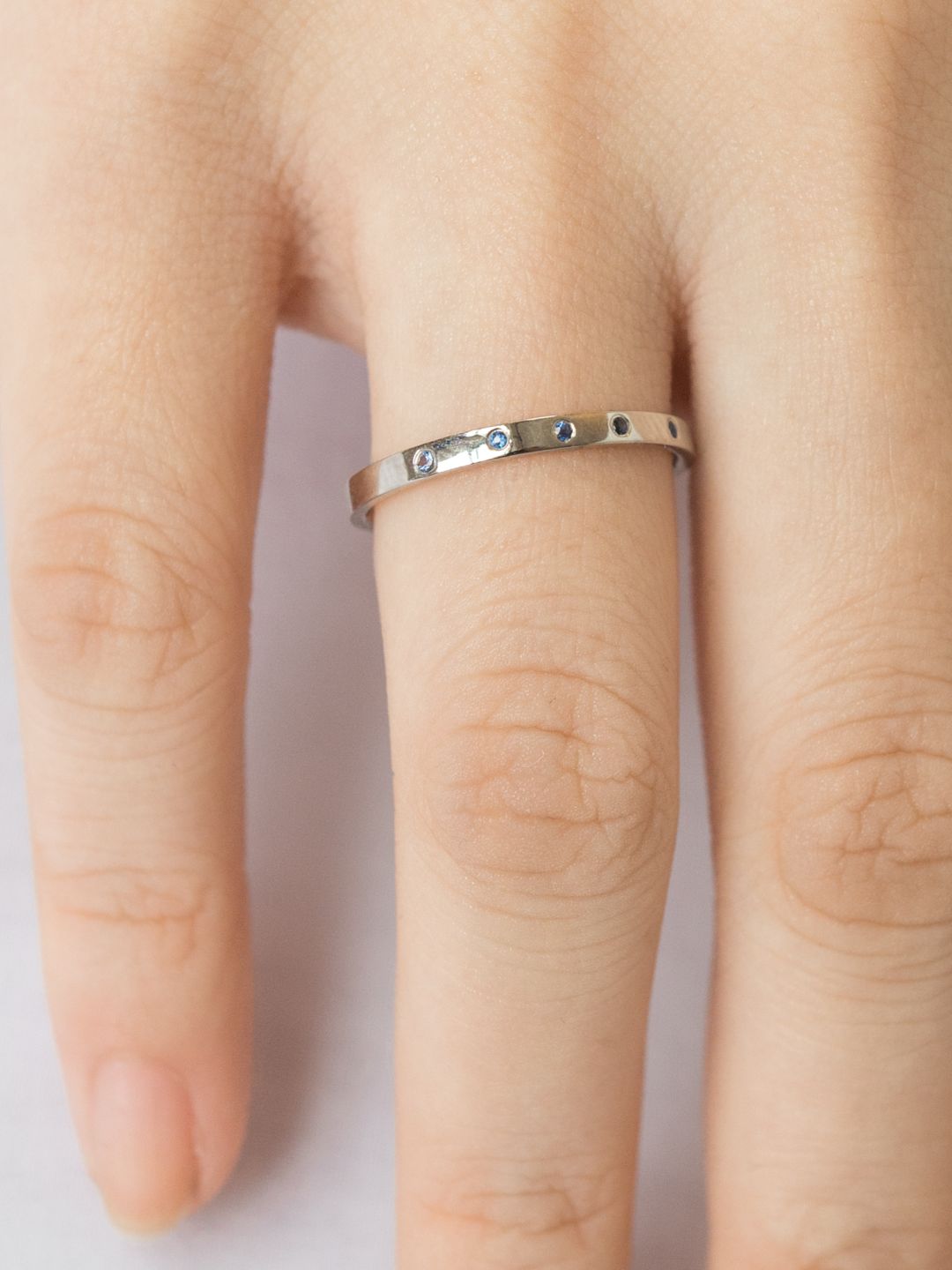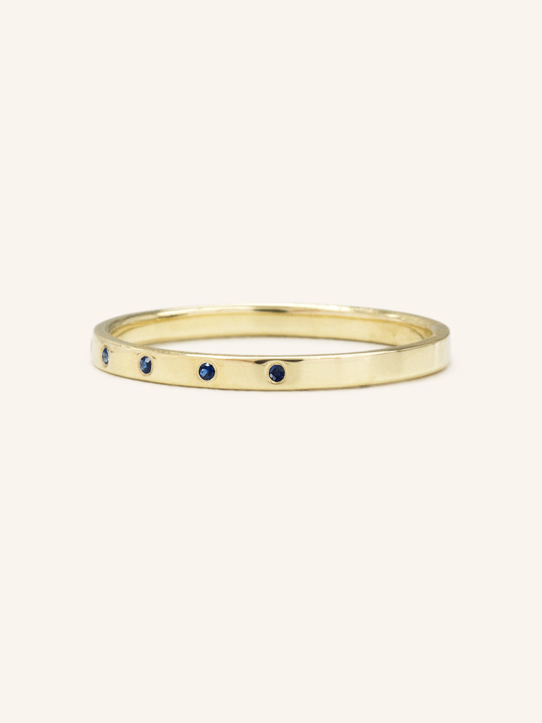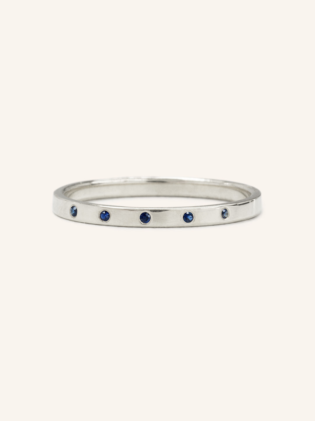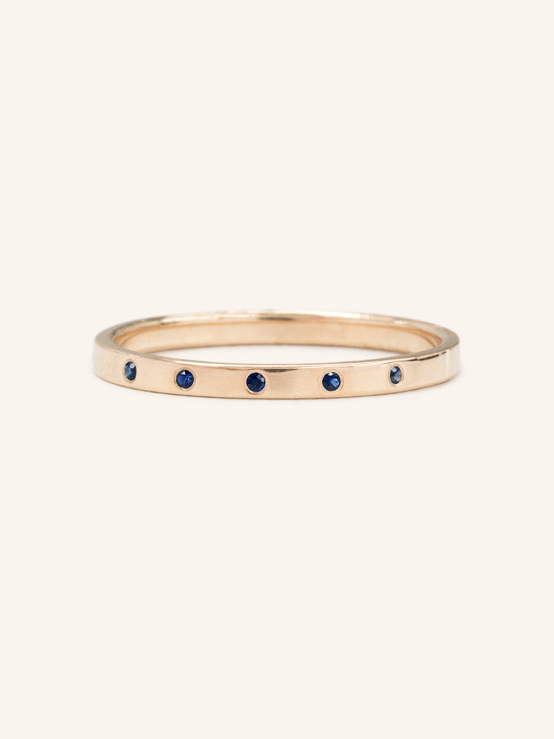 Find serenity and peace in blue. This petite ring is burnished with 5 gorgeous blue sapphires. It could be your unique wedding band or a simple addition to your everyday ring stack.