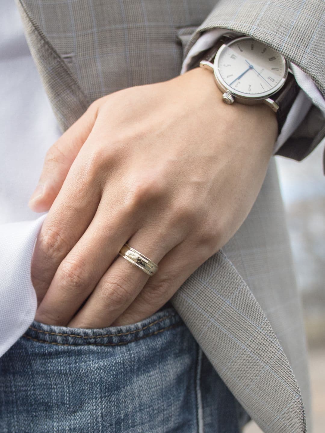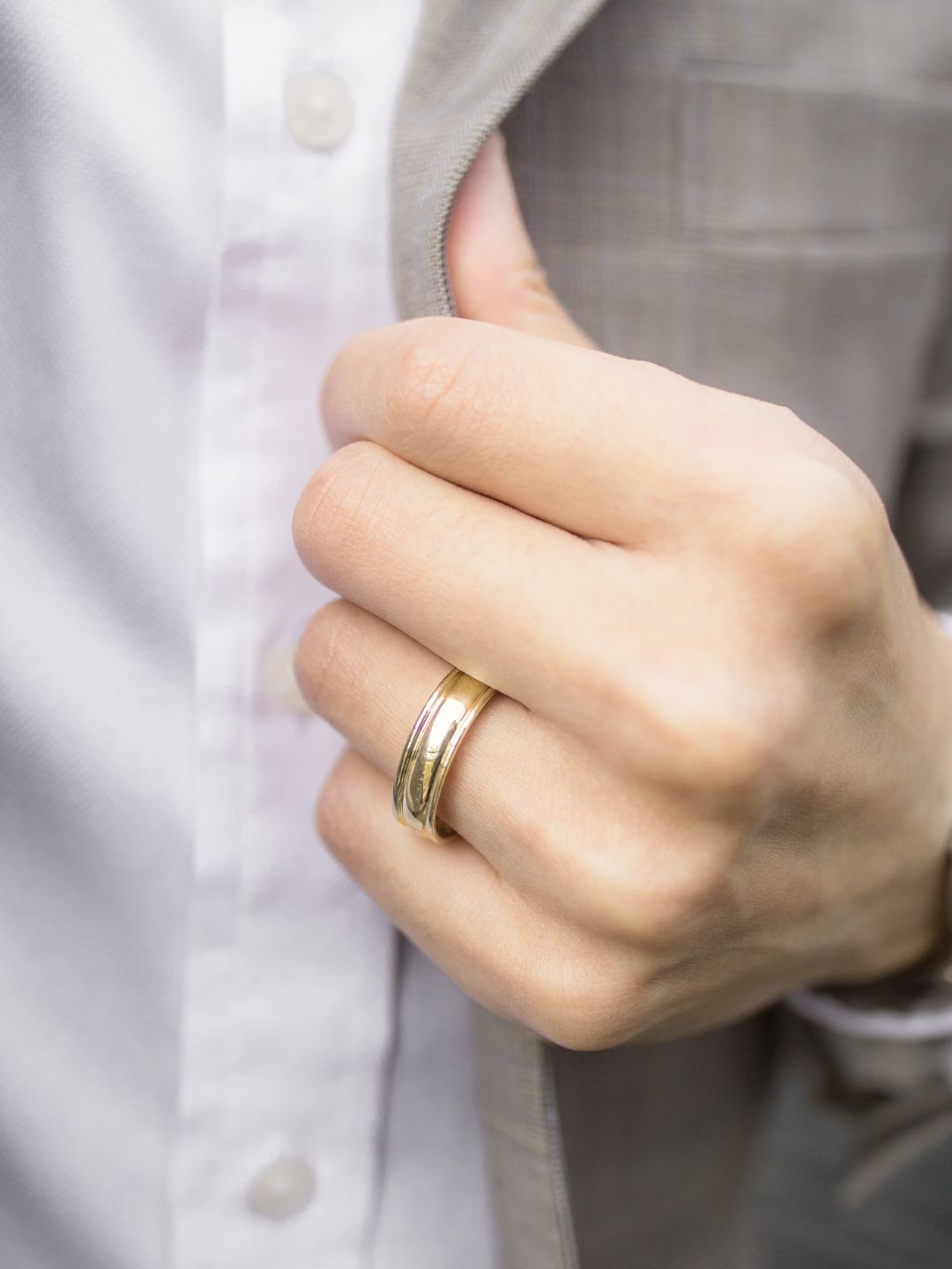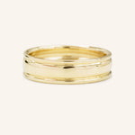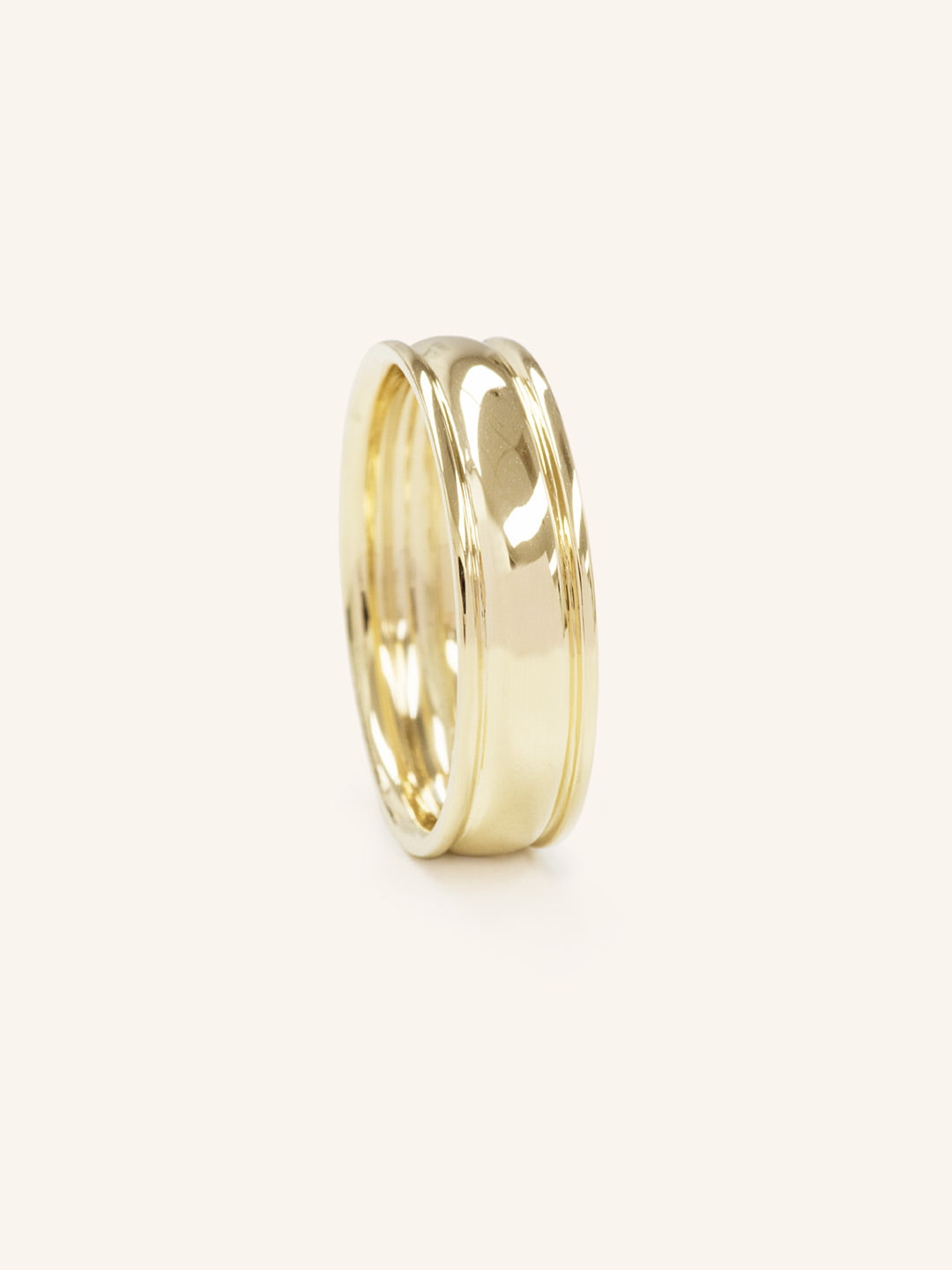 A durable classic that will symbolize your promise. The Water's Edge band is a double groove wedding band that you can comfortably wear. Crafted in solid 14K gold, this piece has a low dome for better fit.