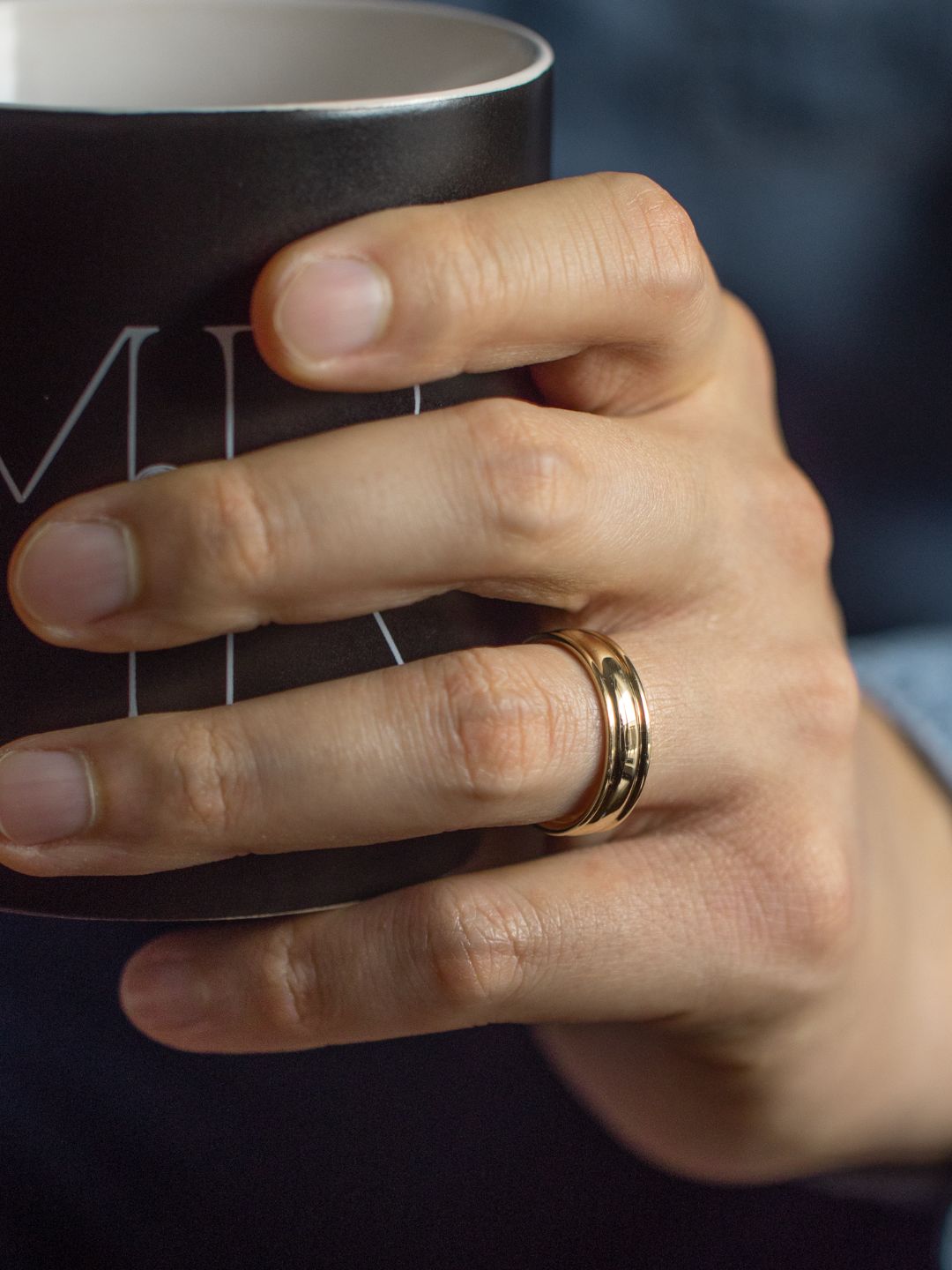 Solid 14k gold ring with a 6.00 mm wide and 1.7 mm thick band (available in yellow, white, or rose gold)