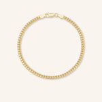The Curb Chain Bracelet is a timeless accessory that exudes elegance and style. Featuring interlocking, flat links, this bracelet offers a sleek and comfortable fit, making it perfect for everyday wear or special occasions. Its versatile design allows it to be worn alone or stacked with other bracelets, adding a refined touch to any ensemble. Elevate your jewelry collection with the classic sophistication of the Curb Chain Bracelet.