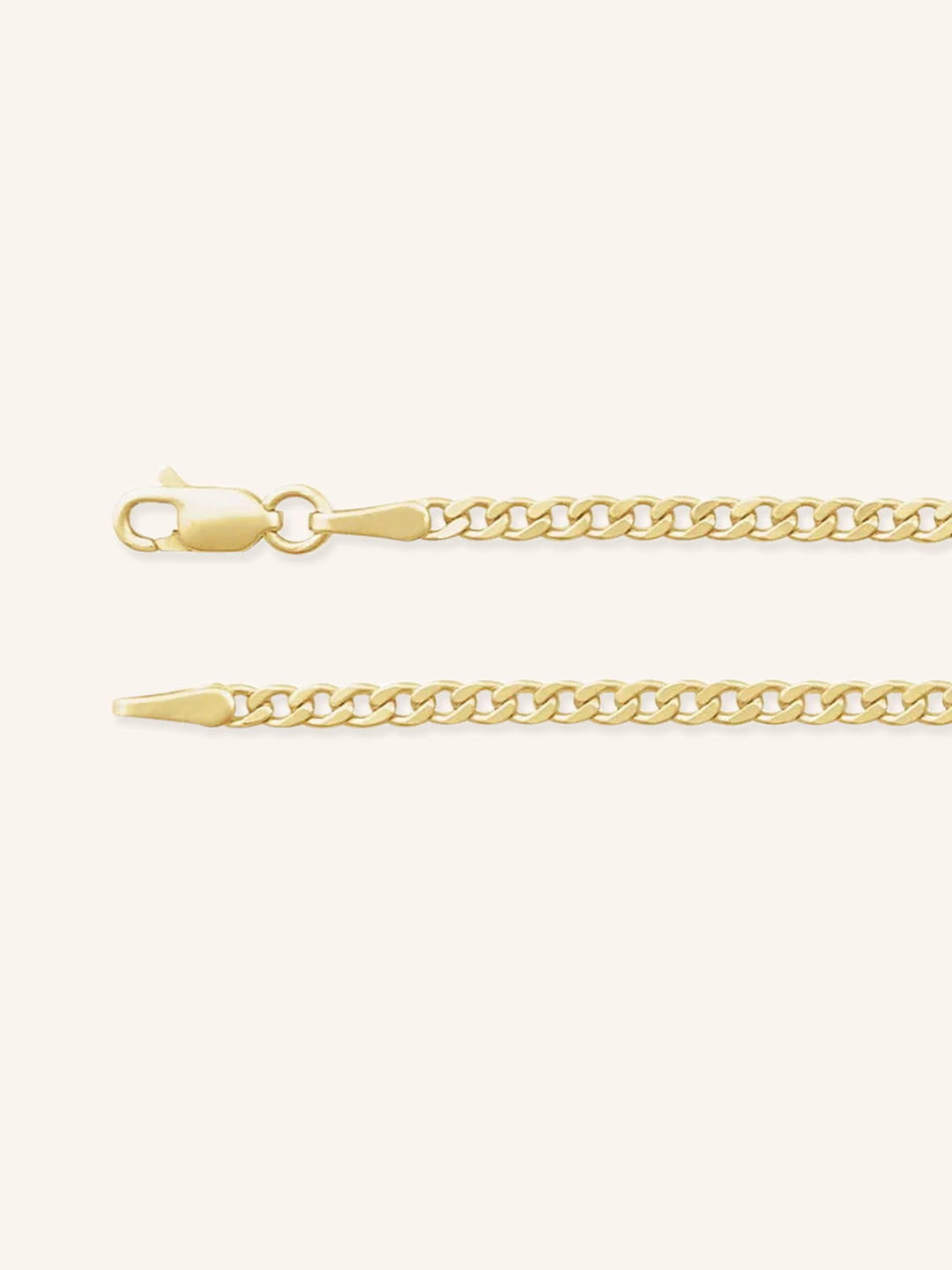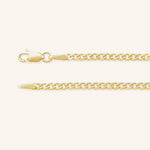 Solid 14k gold 3.0 mm curb chain style 7" in length with a lobster clasp (available only in yellow gold).
