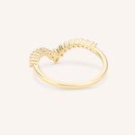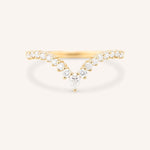 The Arabelle Diamond Curved Wedding Band features a graceful curve designed to complement your engagement ring effortlessly. Set with sparkling diamonds along its contour, this elegant band adds a delicate shimmer, making it perfect for stacking or wearing alone.