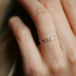 Thoughtfully made with conflict-free diamonds and recycled gold this beautiful diamond wedding band has 5 diamonds that tapers delicately. A great ring that can be worn alone or stacked.