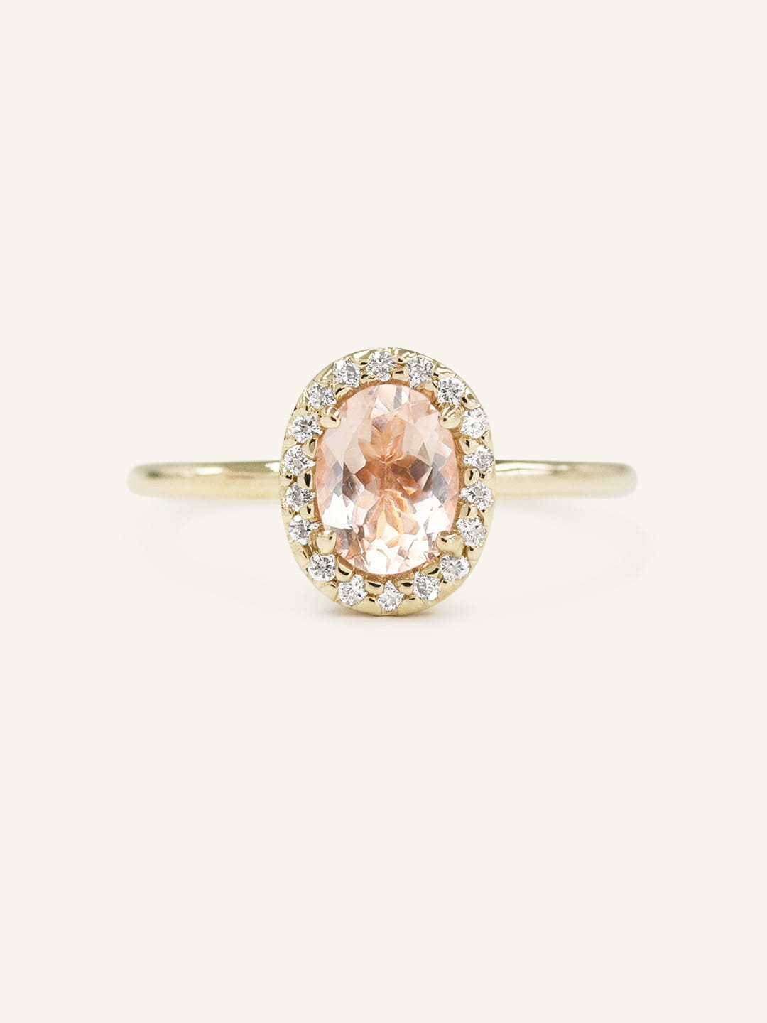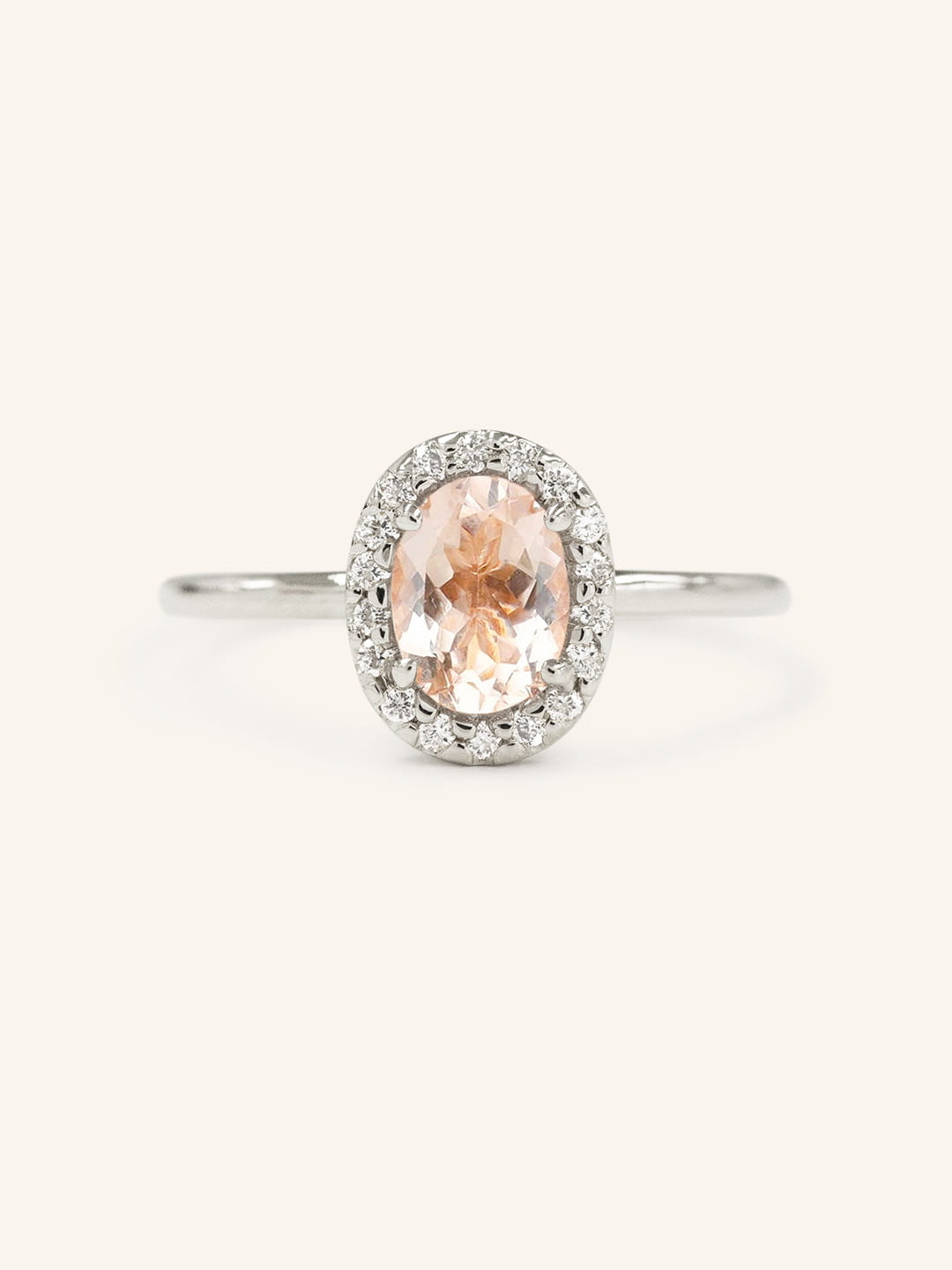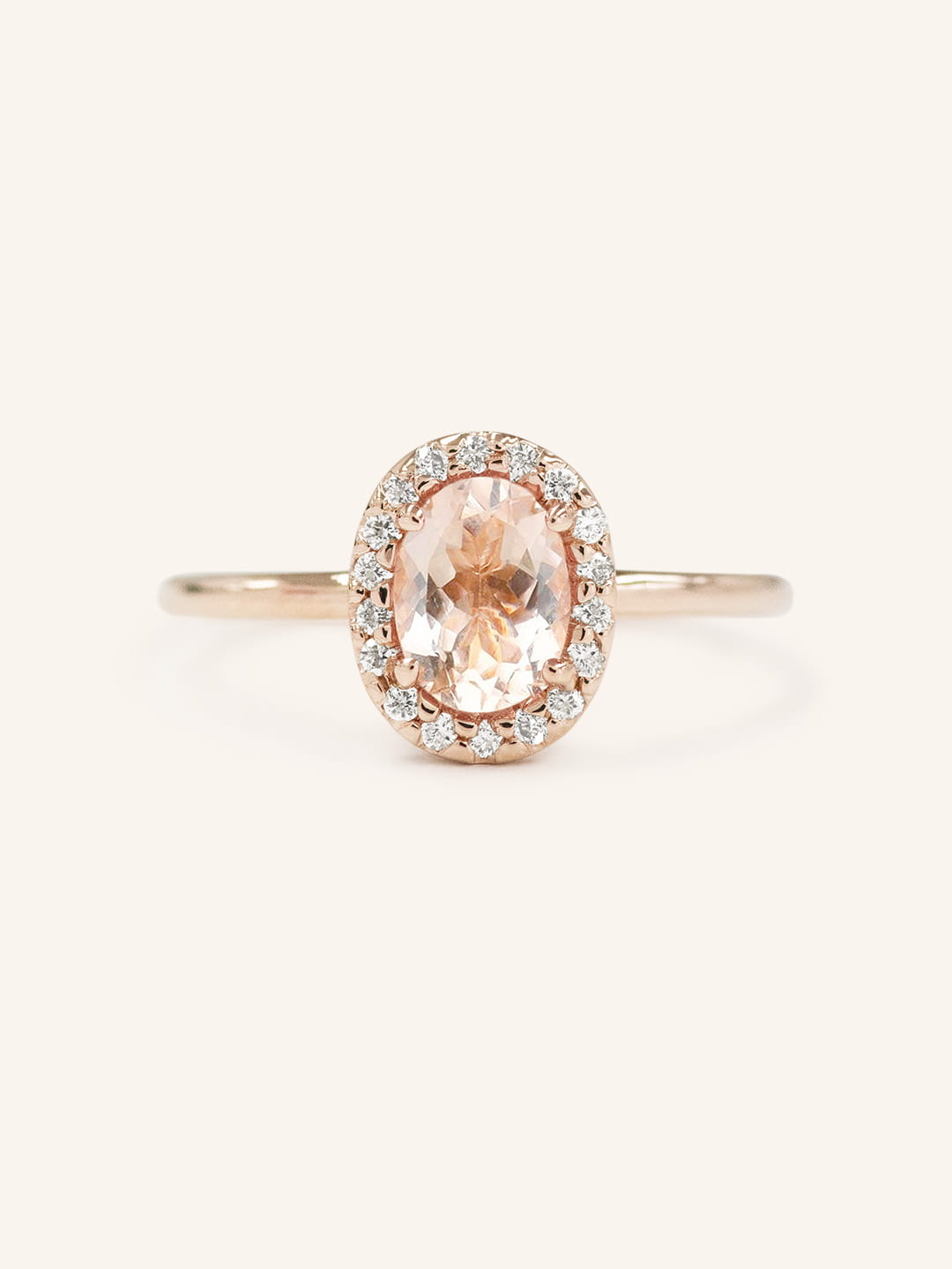 BRIDAL ROSE Halo Oval Morganite Engagement Ring