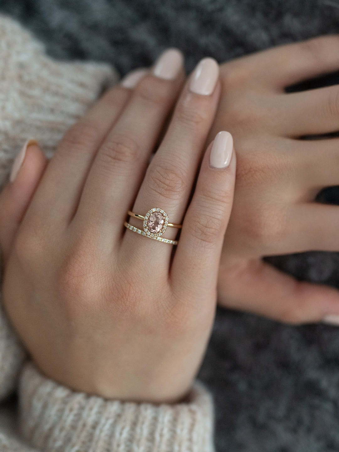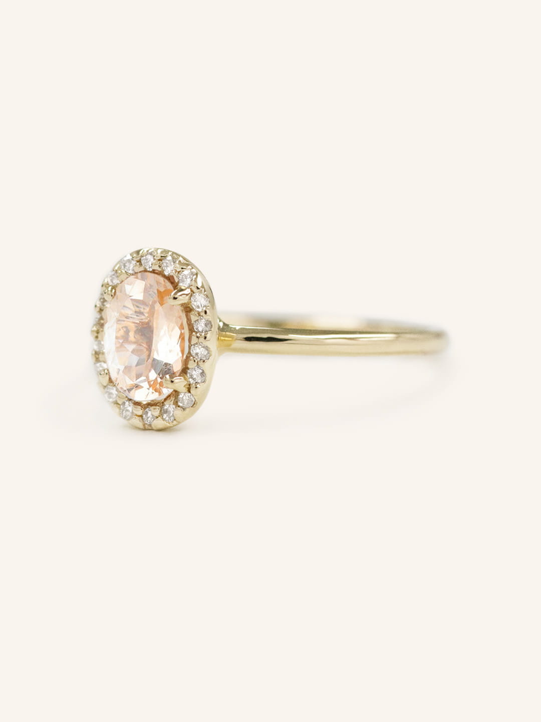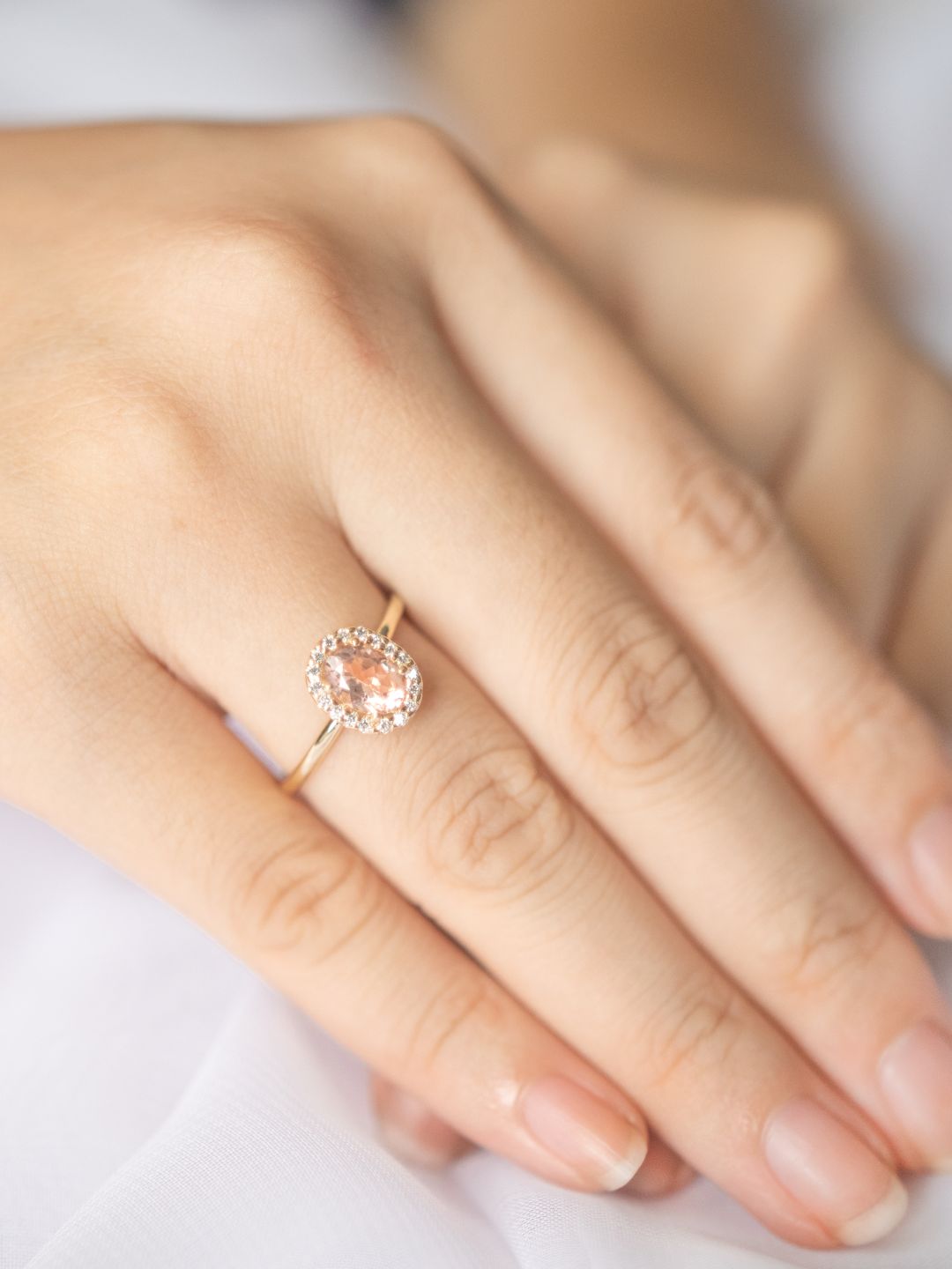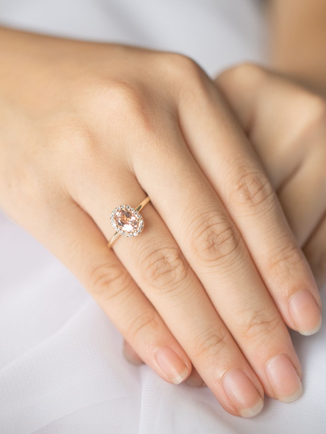 BRIDAL ROSE Halo Oval Morganite Engagement Ring