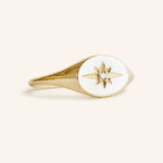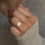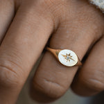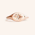 Elevate your everyday style with our Diamond Starburst Signet Ring. This exquisite piece features a sparkling diamond accent, adding a touch of glamour to any outfit.