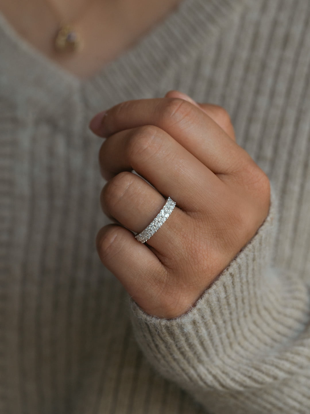 - Check for any loose stones or prongs. If something feels off, pause wearing the piece and contact our customer care team for support.