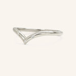 A modern wedding band with a choice of a single, three, or five burnished brilliant diamonds spaced evenly across the front of the ring made with 14k solid gold, this is a ring that can compliment an engagement ring with a pear or marquise cut stone as well as wearing it by itself for a comfortable everyday ring.