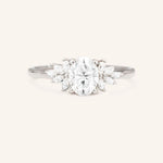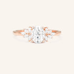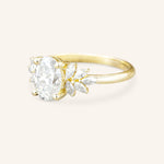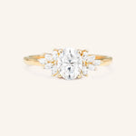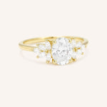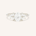 Discover a classic engagement ring with a modern twist. This stunning ring features a brilliant moissanite oval at the center, set in a cluster style with marquise moissanites adorning each side. The cluster design of this ring is both timeless and contemporary, making it a perfect choice for any bride. Made with durable and ethically sourced moissanite stones, this ring is the perfect symbol of your commitment. Express your love with this exquisite ring and start your forever journey in style.