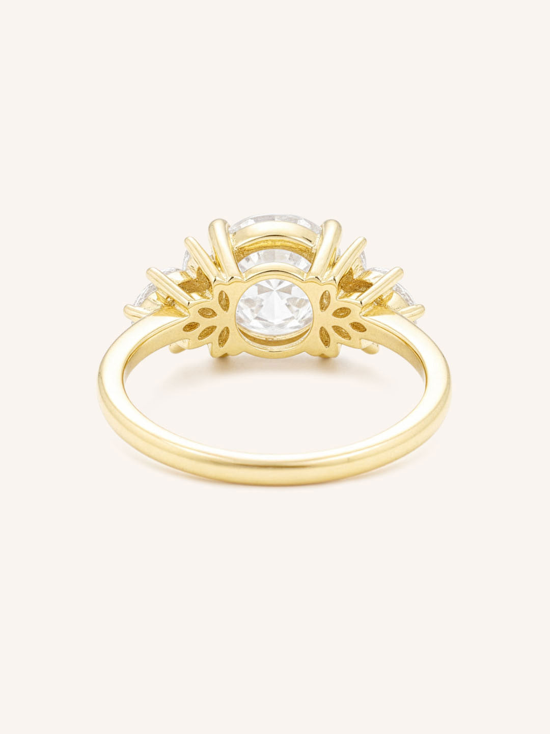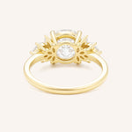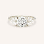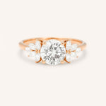 Discover a classic engagement ring with a modern twist. This stunning ring features a brilliant round moissanite at the center, set in a cluster style with marquise moissanites adorning each side. The cluster design of this ring is both timeless and contemporary, making it a perfect choice for any bride. Made with durable and ethically sourced moissanite stones, this ring is the perfect symbol of your commitment. Express your love with this exquisite ring and start your forever journey in style.