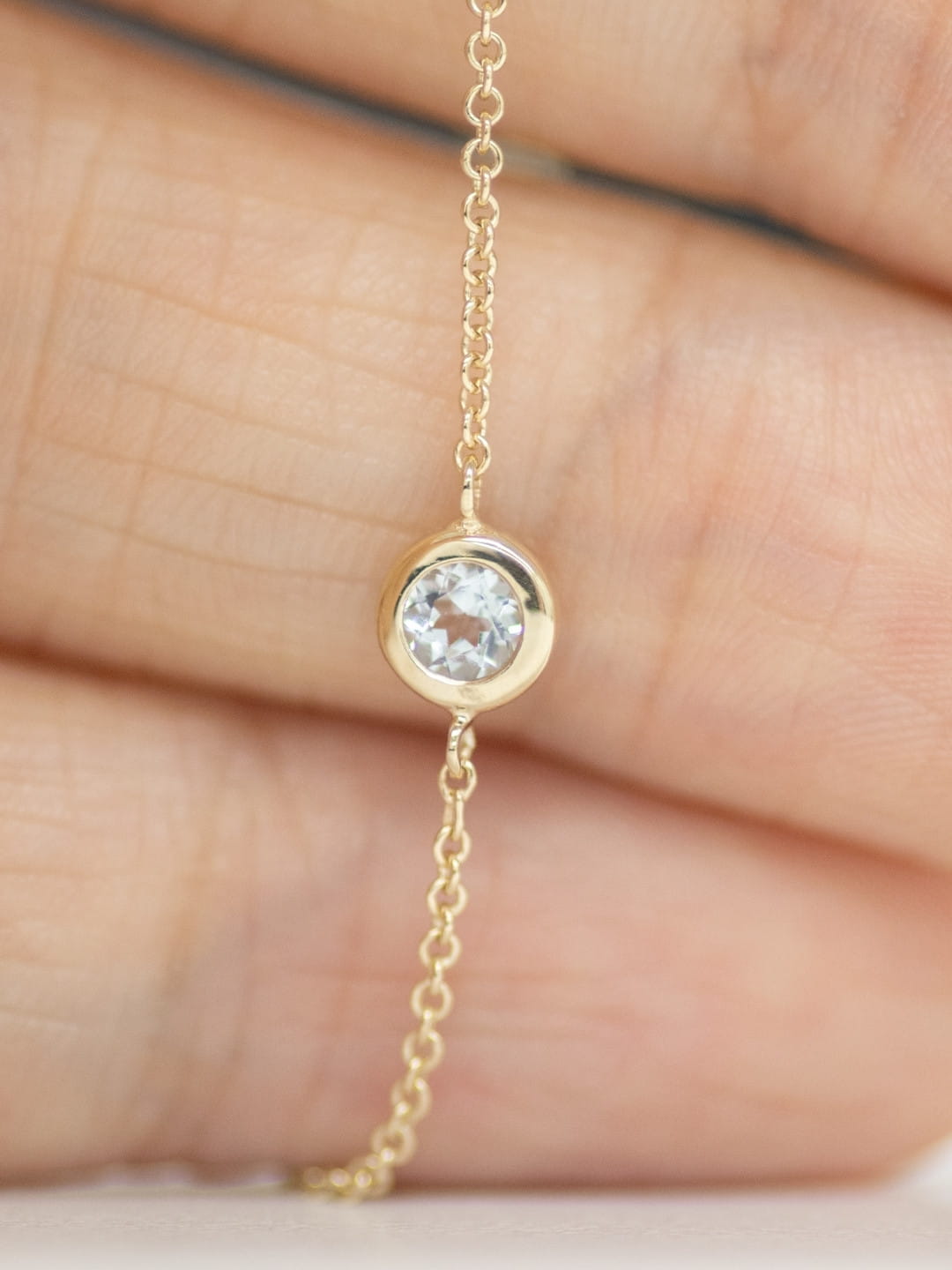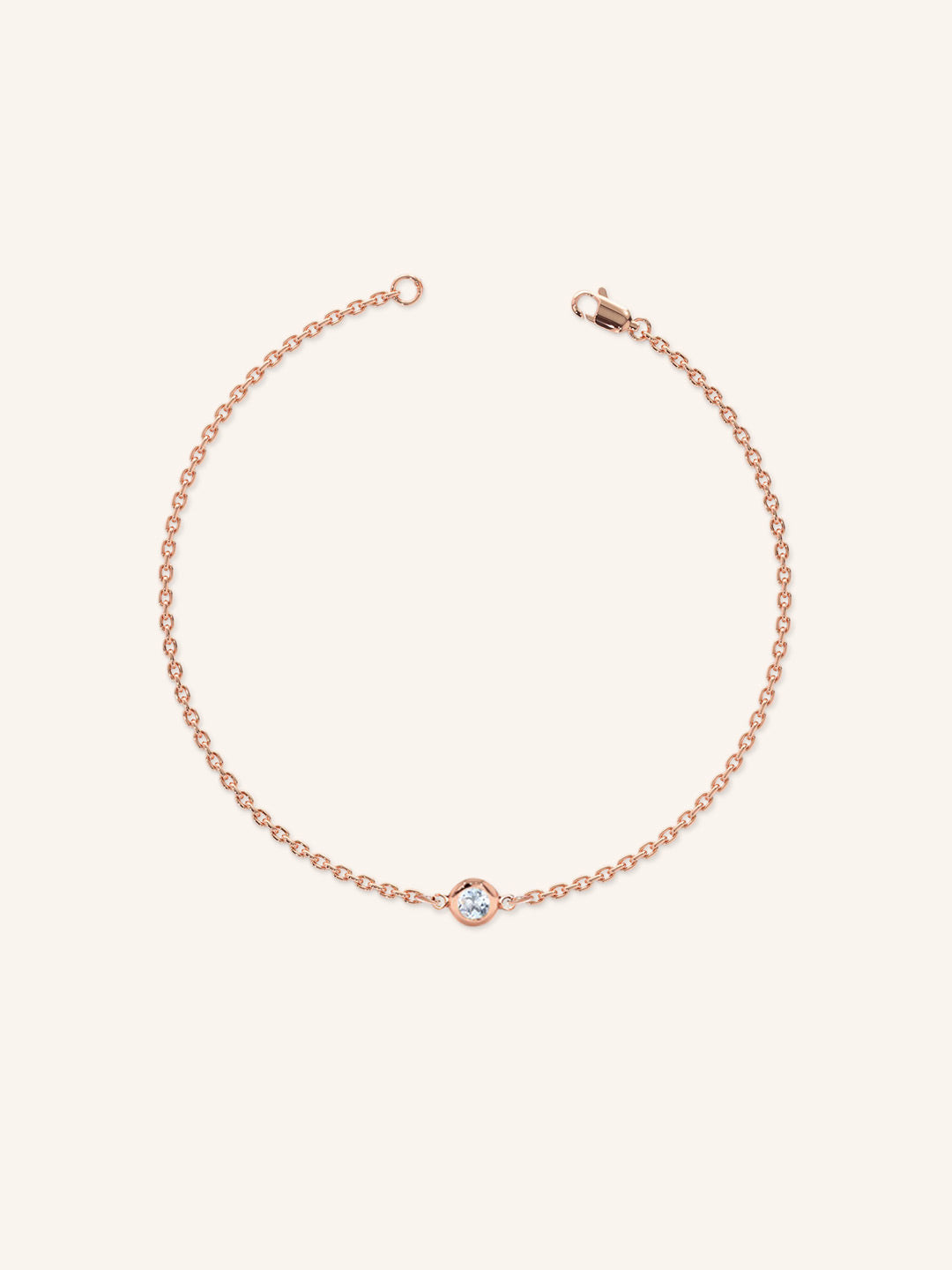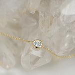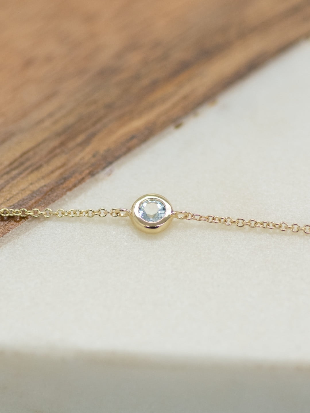 Breathe in the beauty of fall with this beautiful, dainty bracelet that's perfect for everyday wear. This simple piece is crafted from 14K gold, featuring a center stone of your choice. The bezel setting captures the beauty of your chosen stone making this piece perfect for stacking.