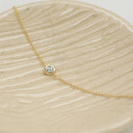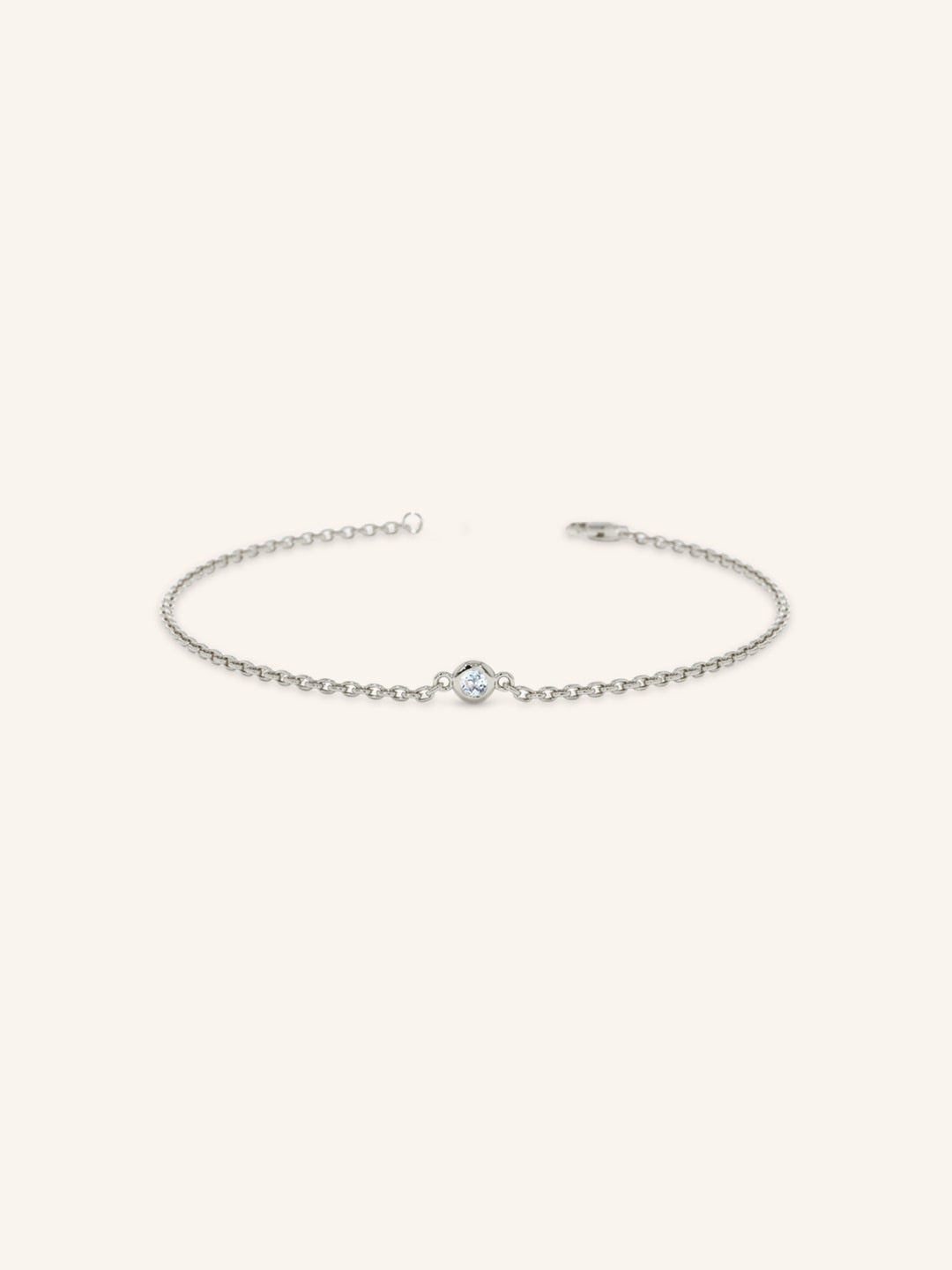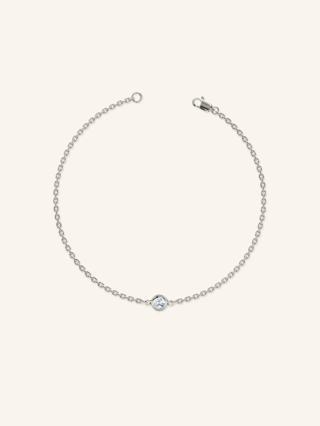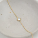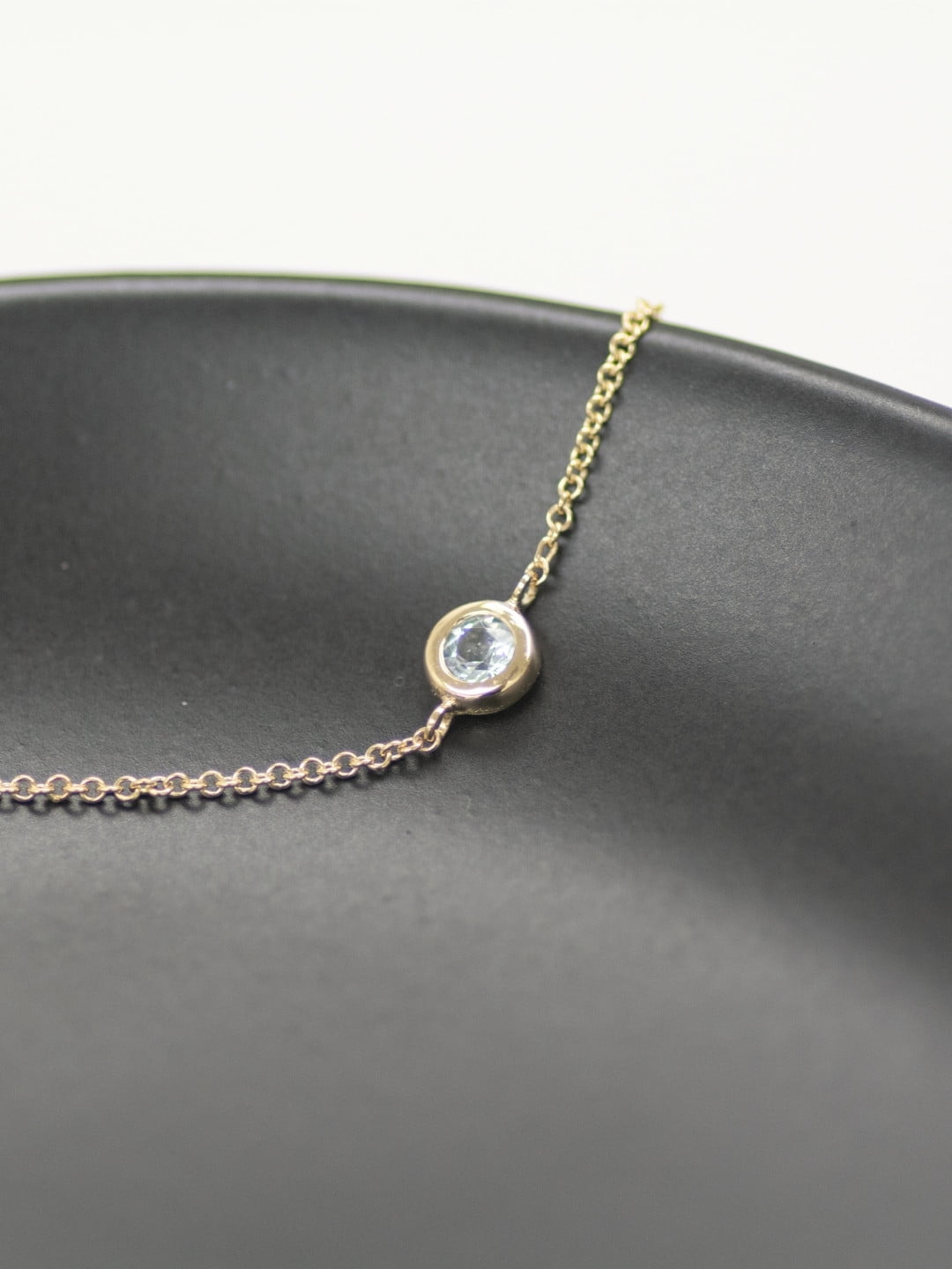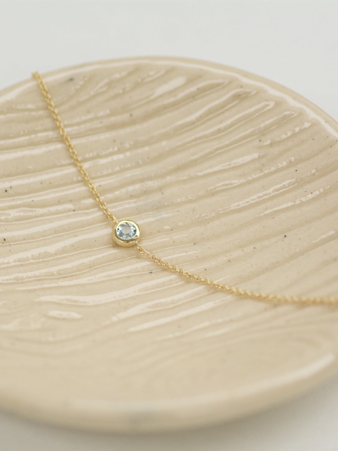 Breathe in the beauty of fall with this beautiful, dainty bracelet that's perfect for everyday wear. This simple piece is crafted from 14K gold, featuring a center stone of your choice. The bezel setting captures the beauty of your chosen stone making this piece perfect for stacking.