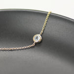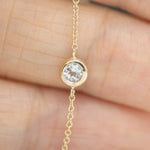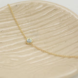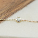 Solid 14k gold 3.00 mm bezel on a 1.15 mm 7" cable chain with lobster clasp closure (available in yellow, white, or rose).