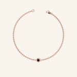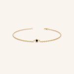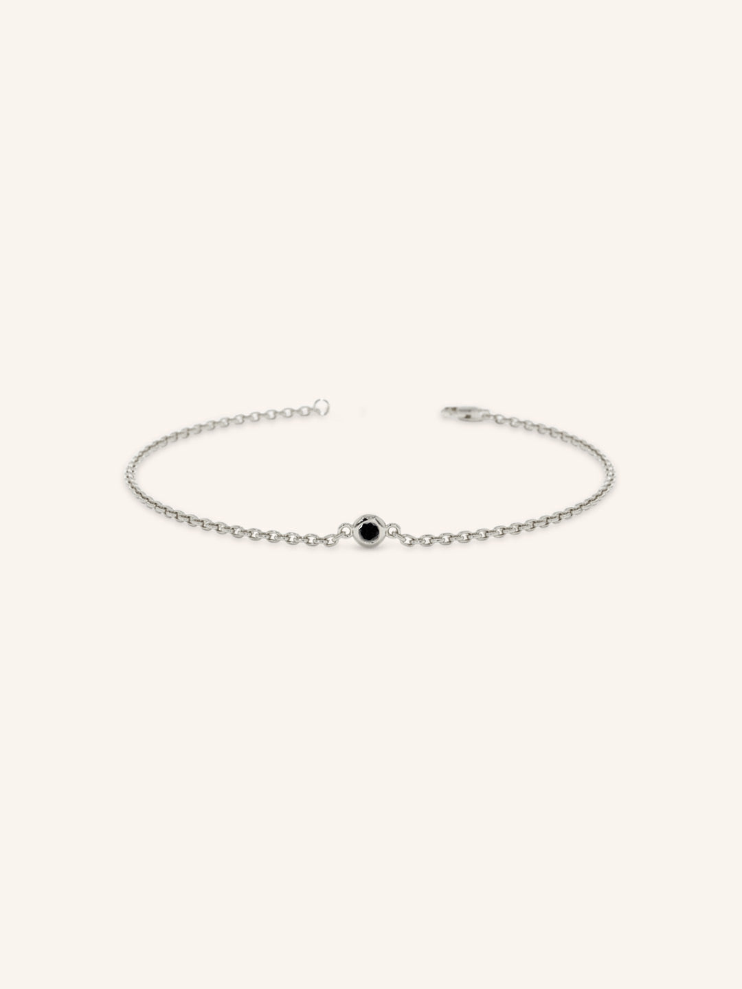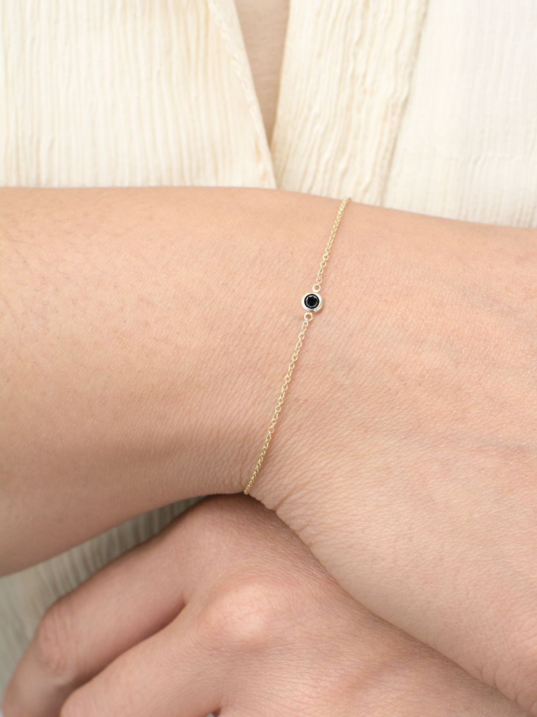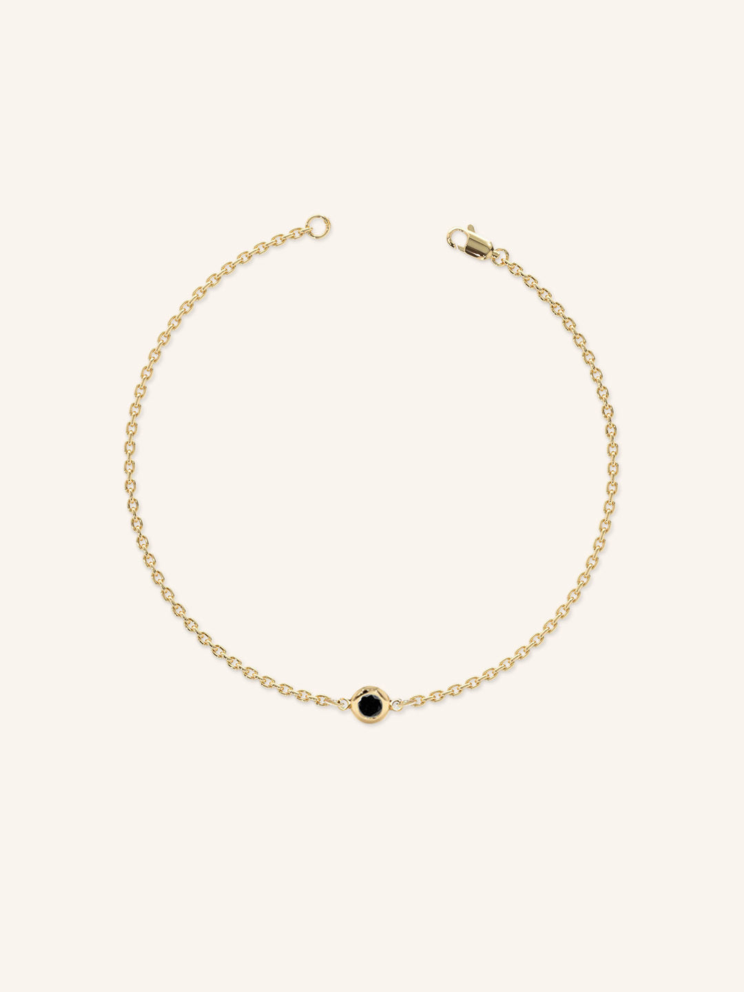 Breathe in the beauty of fall with this beautiful, dainty bracelet that's perfect for everyday wear. This simple piece is crafted from 14K gold, featuring a center stone of your choice. The bezel setting captures the beauty of your chosen stone making this piece perfect for stacking.