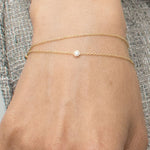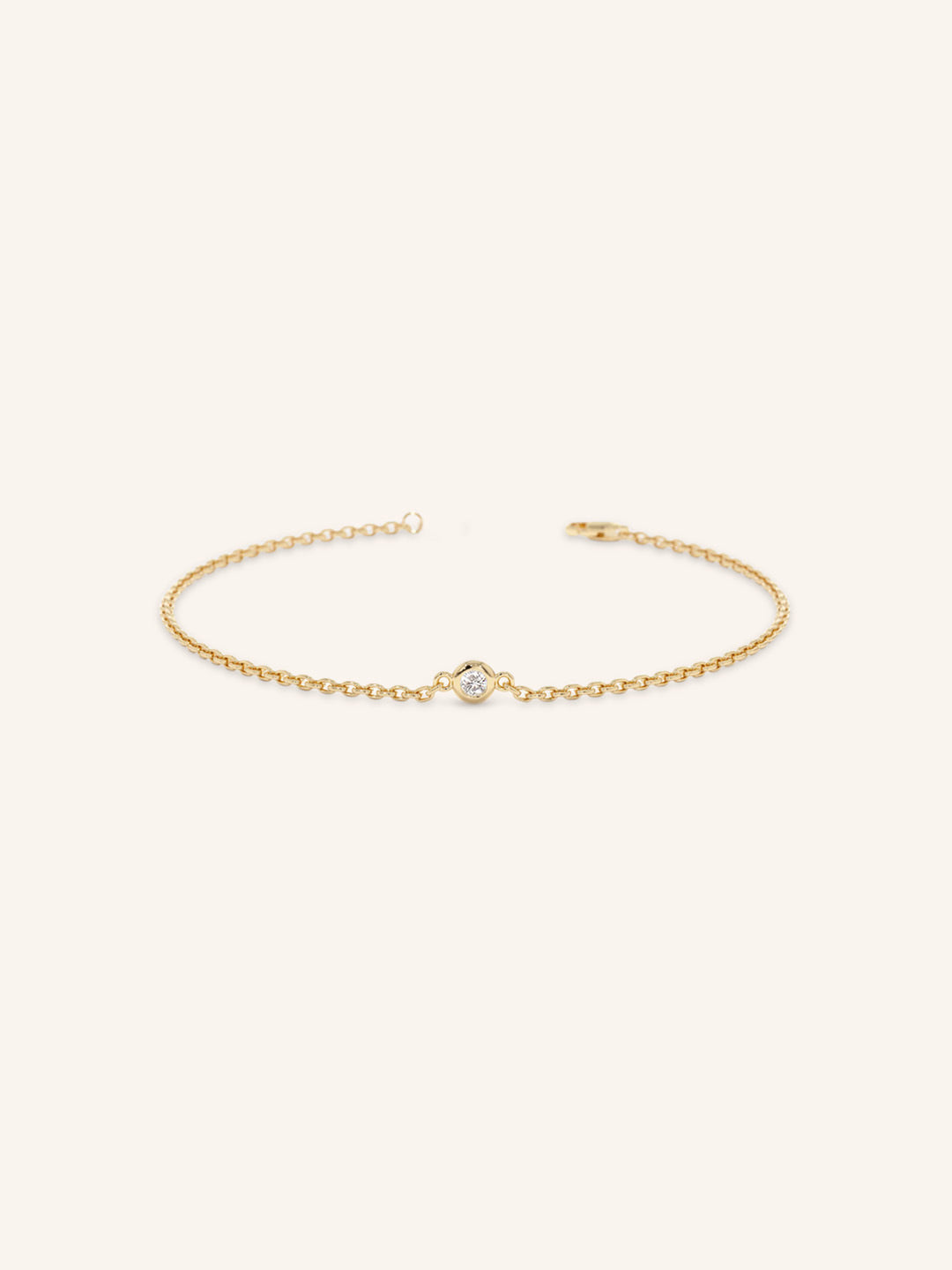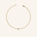Breathe in the beauty of fall with this beautiful, dainty bracelet that's perfect for everyday wear. This simple piece is crafted from 14K gold, featuring a center stone of your choice. The bezel setting captures the beauty of your chosen stone making this piece perfect for stacking.