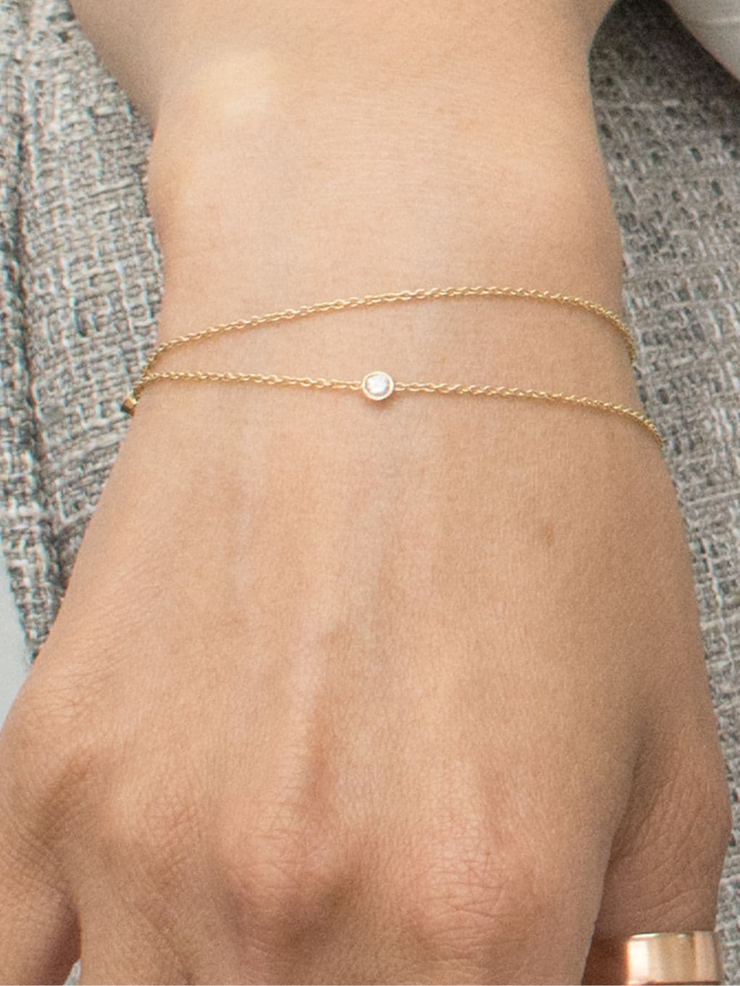 Keep your bracelet away from chlorine, bleach, and other strong household cleaners, as they can dull the finish over time—even on solid gold.
