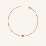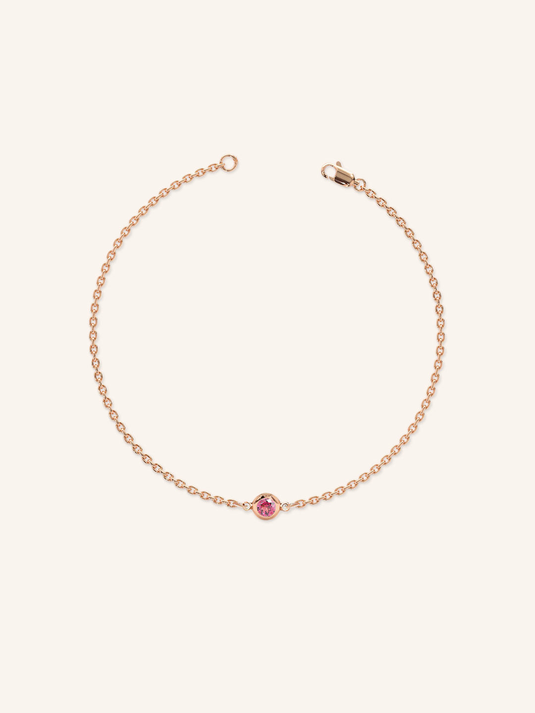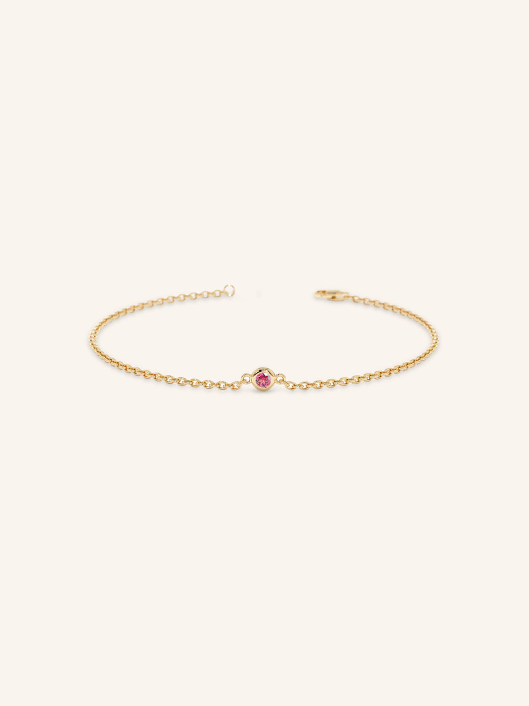 Breathe in the beauty of fall with this beautiful, dainty bracelet that's perfect for everyday wear. This simple piece is crafted from 14K gold, featuring a center stone of your choice. The bezel setting captures the beauty of your chosen stone making this piece perfect for stacking.