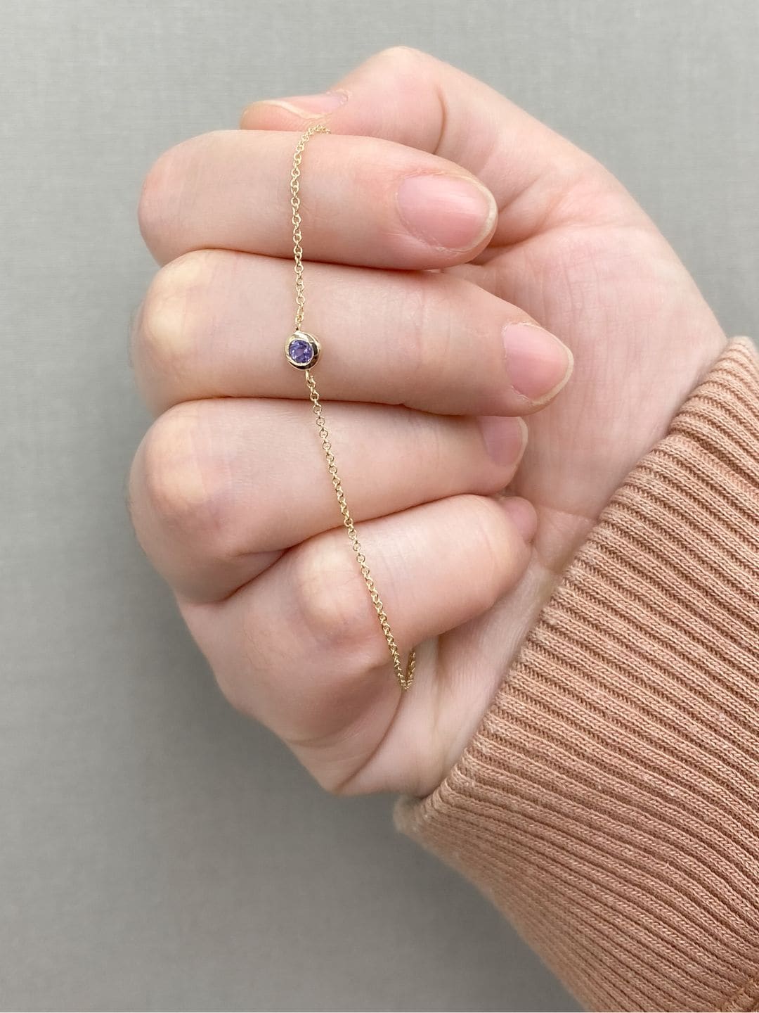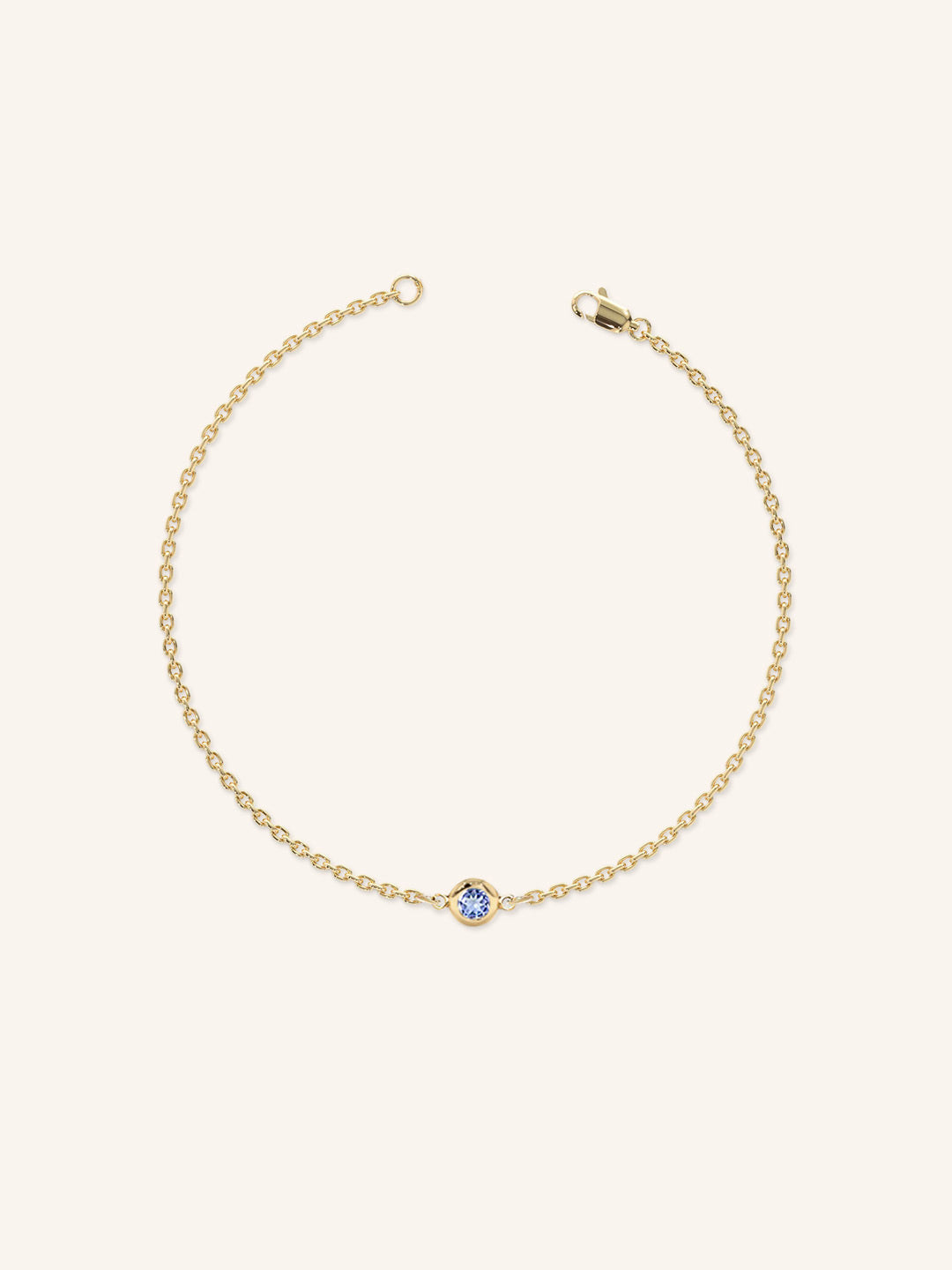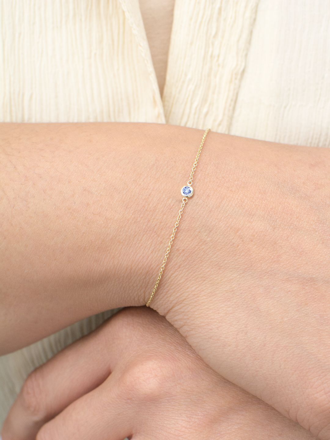 Breathe in the beauty of fall with this beautiful, dainty bracelet that's perfect for everyday wear. This simple piece is crafted from 14K gold, featuring a center stone of your choice. The bezel setting captures the beauty of your chosen stone making this piece perfect for stacking.