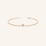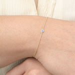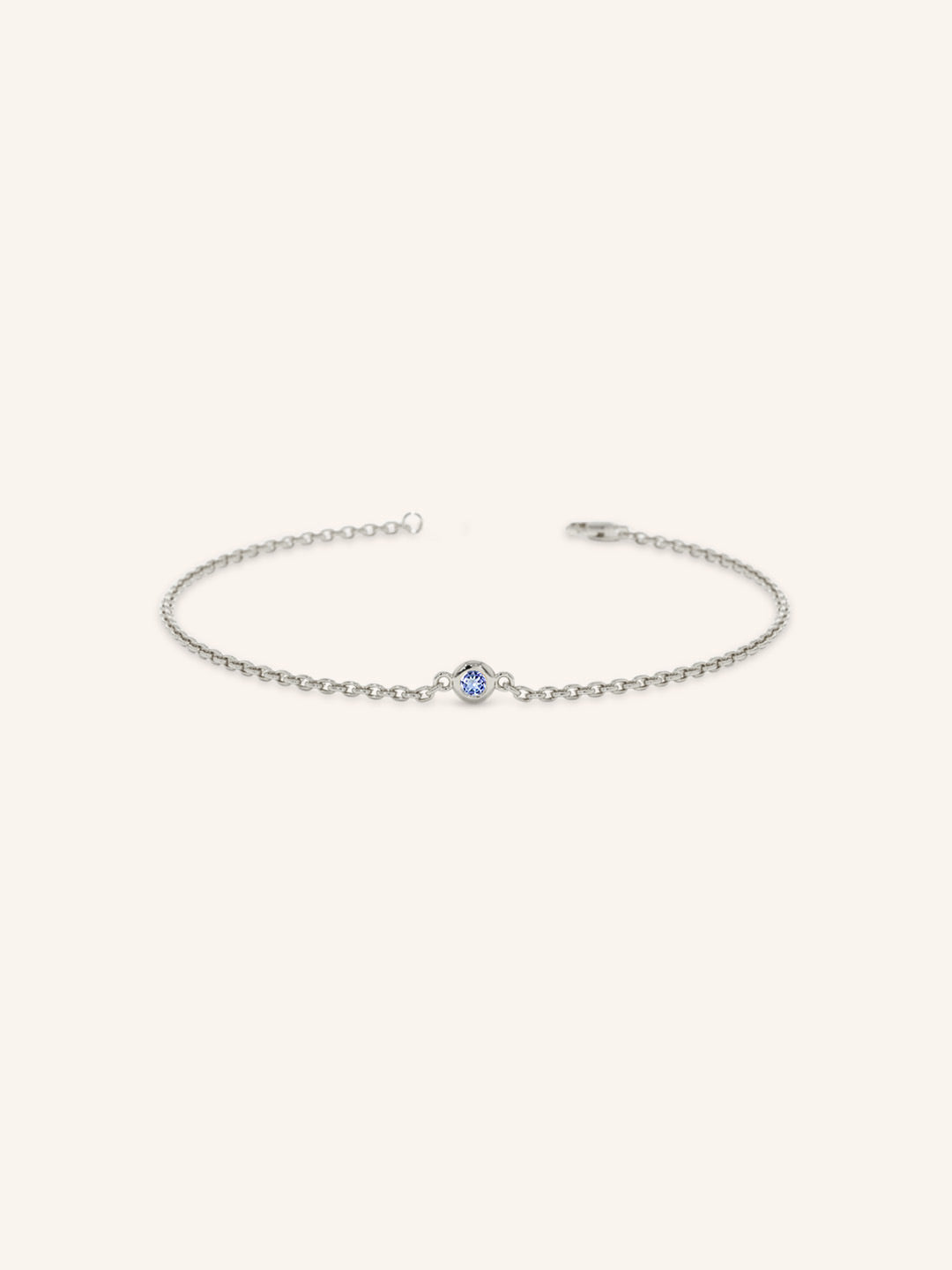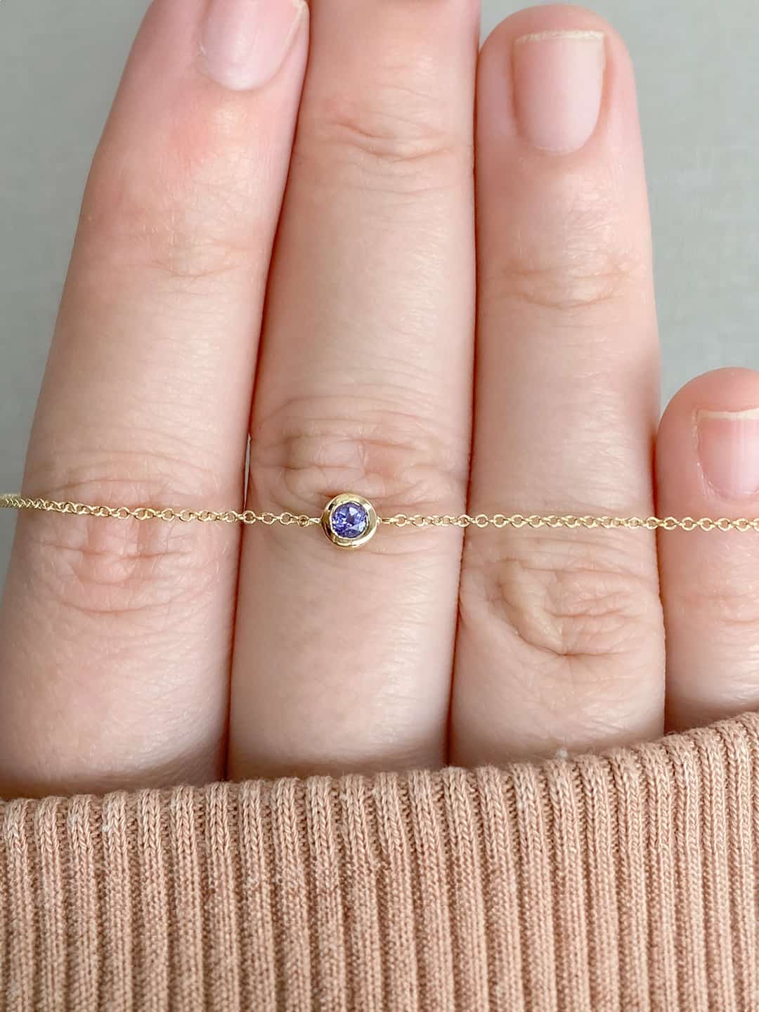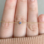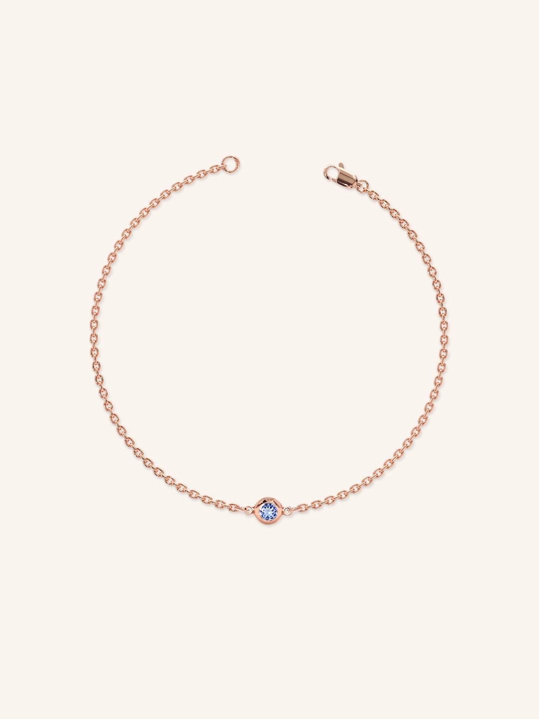 Breathe in the beauty of fall with this beautiful, dainty bracelet that's perfect for everyday wear. This simple piece is crafted from 14K gold, featuring a center stone of your choice. The bezel setting captures the beauty of your chosen stone making this piece perfect for stacking.