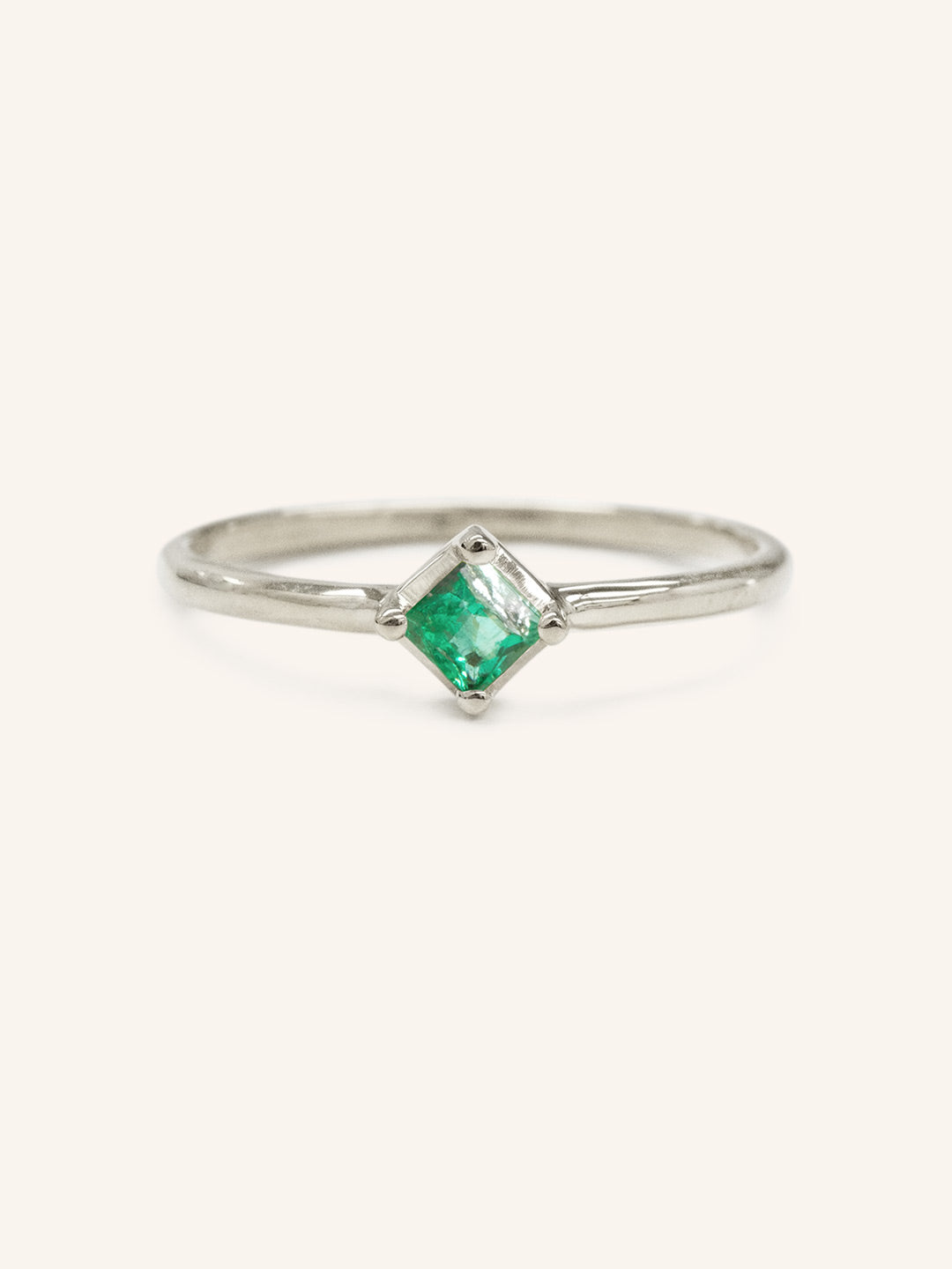 - One (1) Princess Cut Natural Emerald (approx 0.14 ctw, AA grading)
