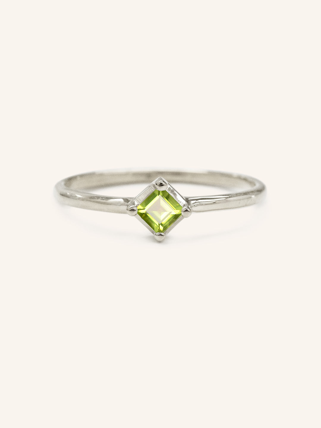 - One (1) Princess Cut Natural Peridot (approx 0.17 ctw, AA grading)
