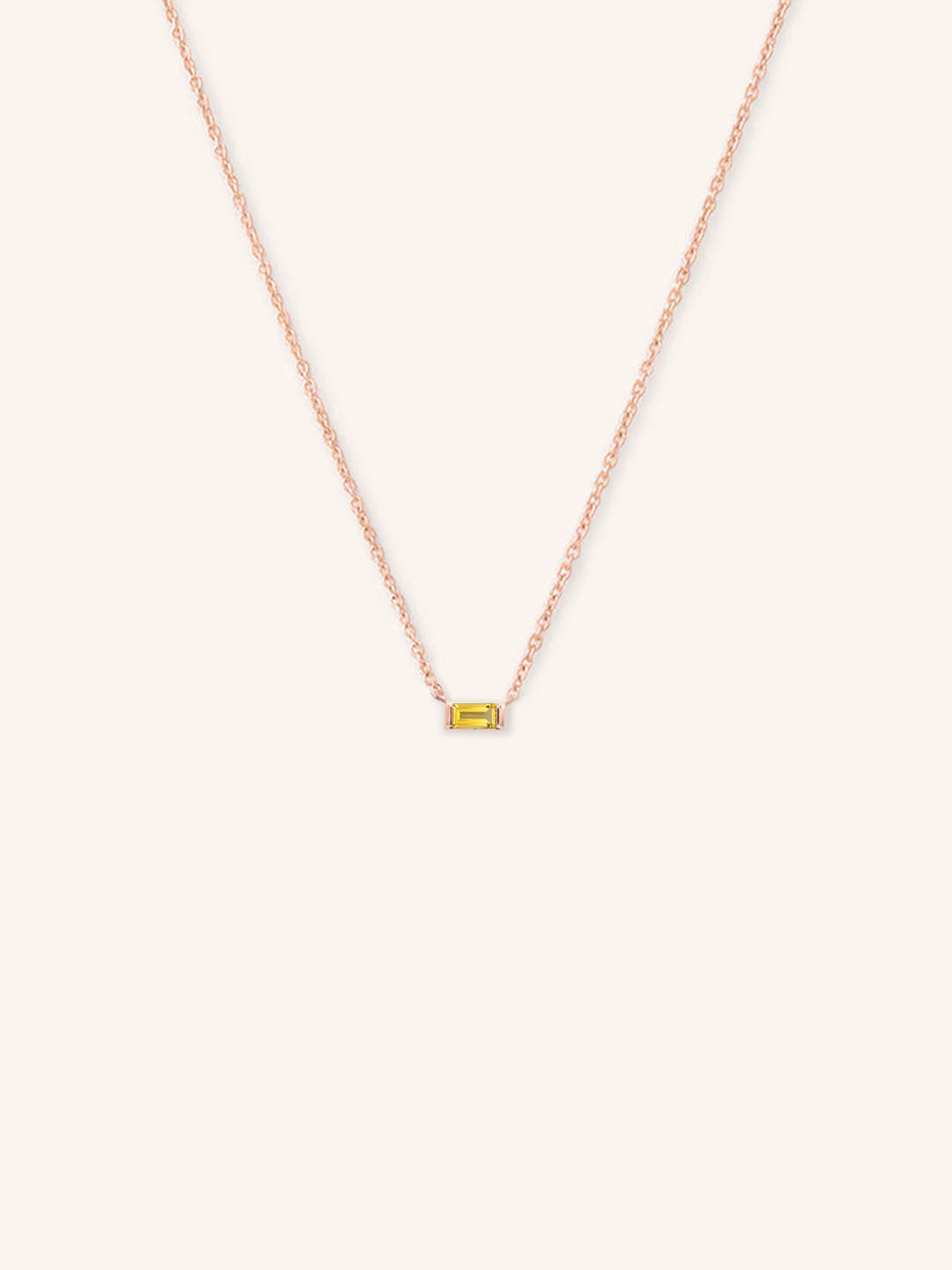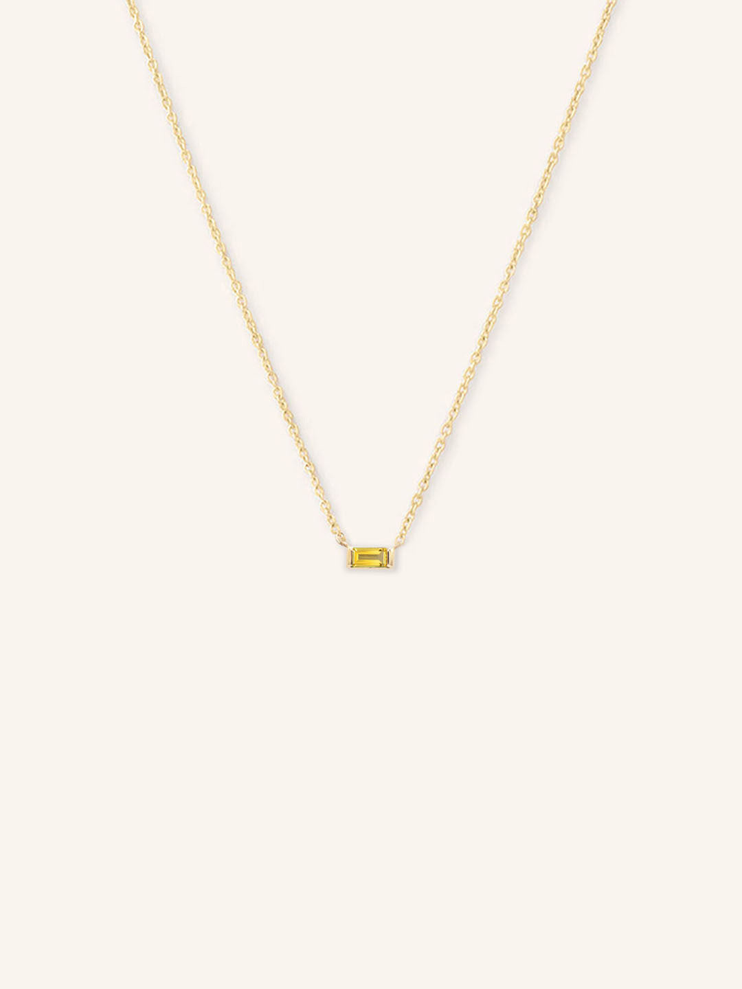 Adorn yourself with the exquisite Gemma Baguette Necklace, a stunning accessory featuring a minimal gemstone baguette design and a luxurious simplicity. Perfect for showing off your sophistication and understated chic, this elegant necklace is sure to become a favorite.