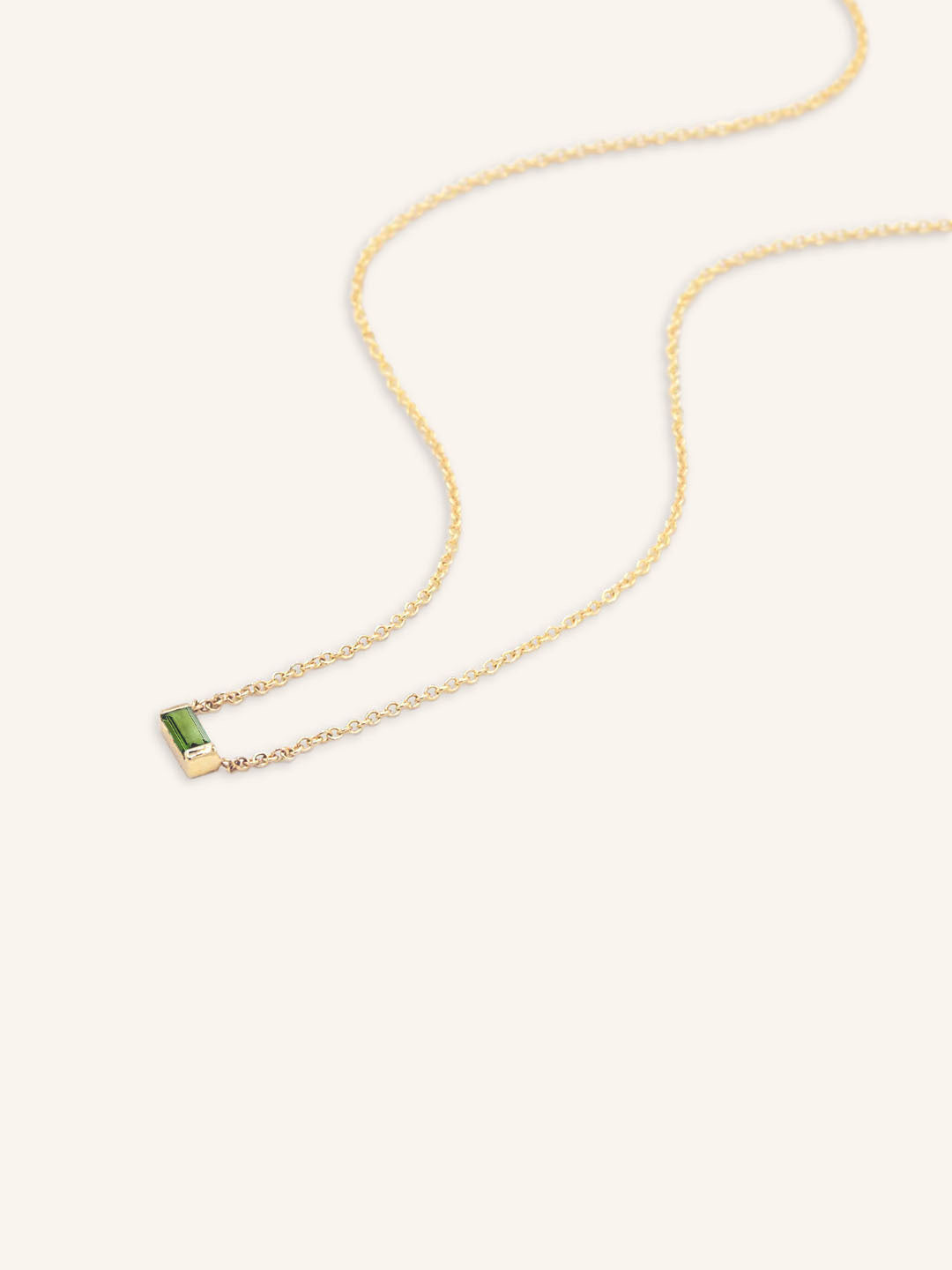 Adorn yourself with the exquisite Gemma Baguette Necklace, a stunning accessory featuring a minimal gemstone baguette design and a luxurious simplicity. Perfect for showing off your sophistication and understated chic, this elegant necklace is sure to become a favorite.