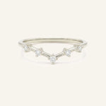 The Irena Curved Diamond Wedding Band features a graceful curve lined with sparkling diamonds, designed to nestle beautifully against your engagement ring. Its timeless style adds both harmony and shimmer to your bridal set.