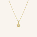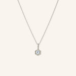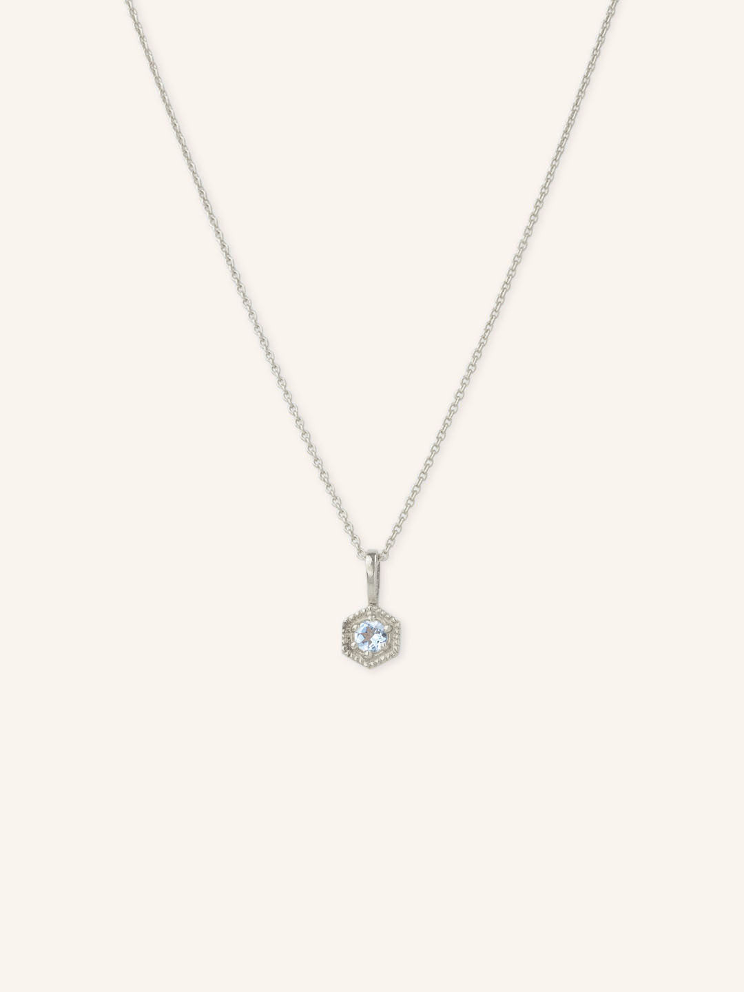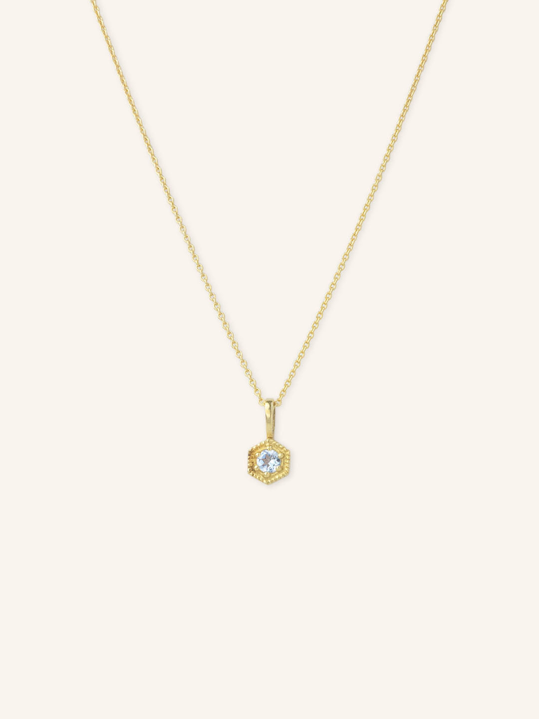 The Marigold Necklace features a beautiful hexagon shape six-prong setting with a single sparkling gemstone and delicate hand beading around the edge. This fun geometric necklace adds a unique touch to your jewelry collection, making it a versatile and eye-catching piece. Elevate your style with the Marigold Necklace, a perfect blend of modern design and timeless elegance.