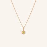 The Marigold Necklace features a beautiful hexagon shape six-prong setting with a single sparkling gemstone and delicate hand beading around the edge. This fun geometric necklace adds a unique touch to your jewelry collection, making it a versatile and eye-catching piece. Elevate your style with the Marigold Necklace, a perfect blend of modern design and timeless elegance.