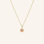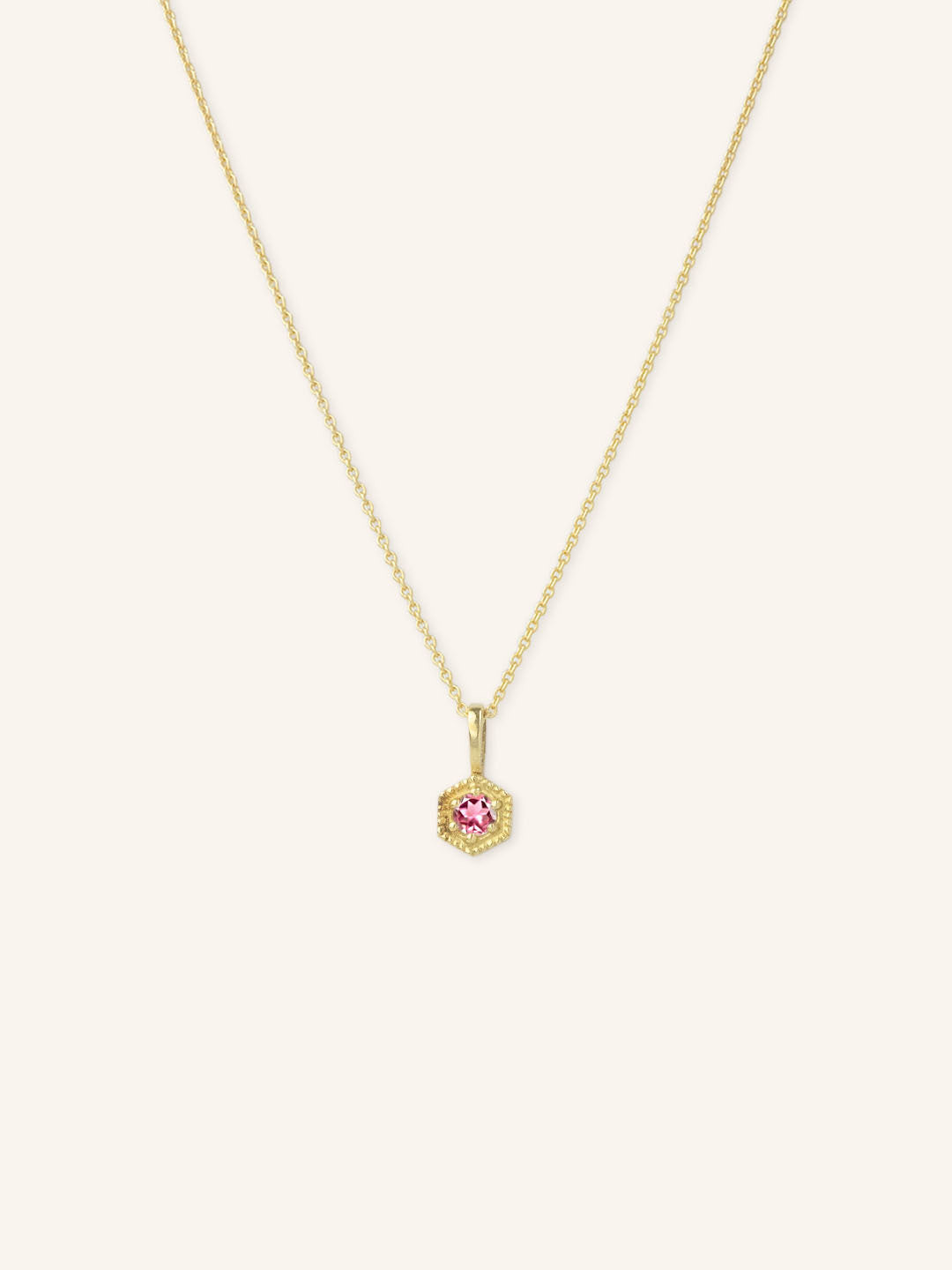 The Marigold Necklace features a beautiful hexagon shape six-prong setting with a single sparkling gemstone and delicate hand beading around the edge. This fun geometric necklace adds a unique touch to your jewelry collection, making it a versatile and eye-catching piece. Elevate your style with the Marigold Necklace, a perfect blend of modern design and timeless elegance.