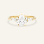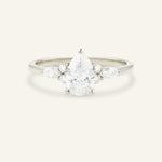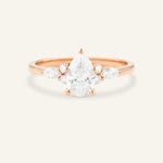 Featuring a pear cut lab-grown diamond, available in 8x5mm, 9x6mm, or 10x6.5mm sizes. *Sizes are approximate and measurements are subject to change/alter to fit. The center stone will come with a certified report.