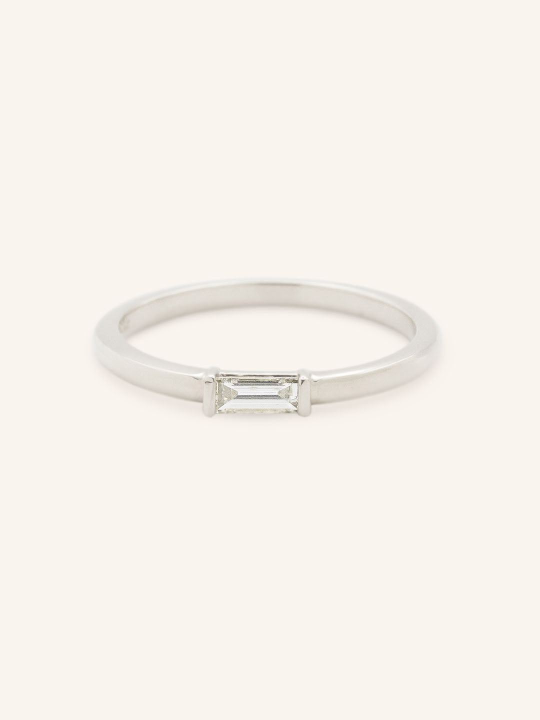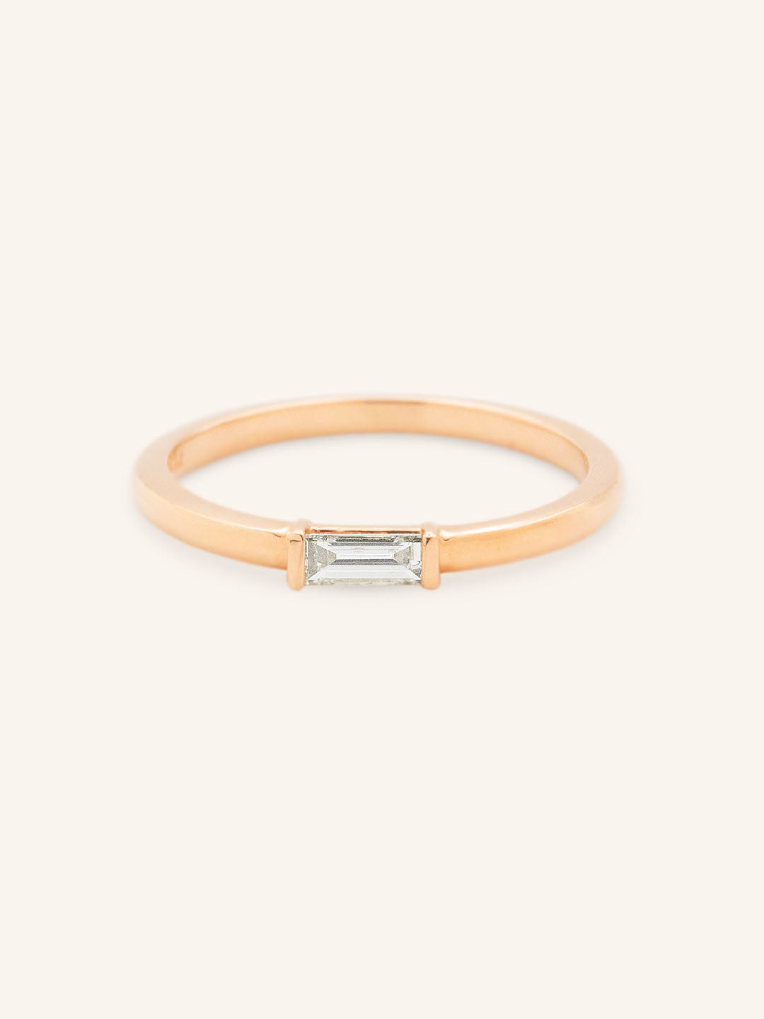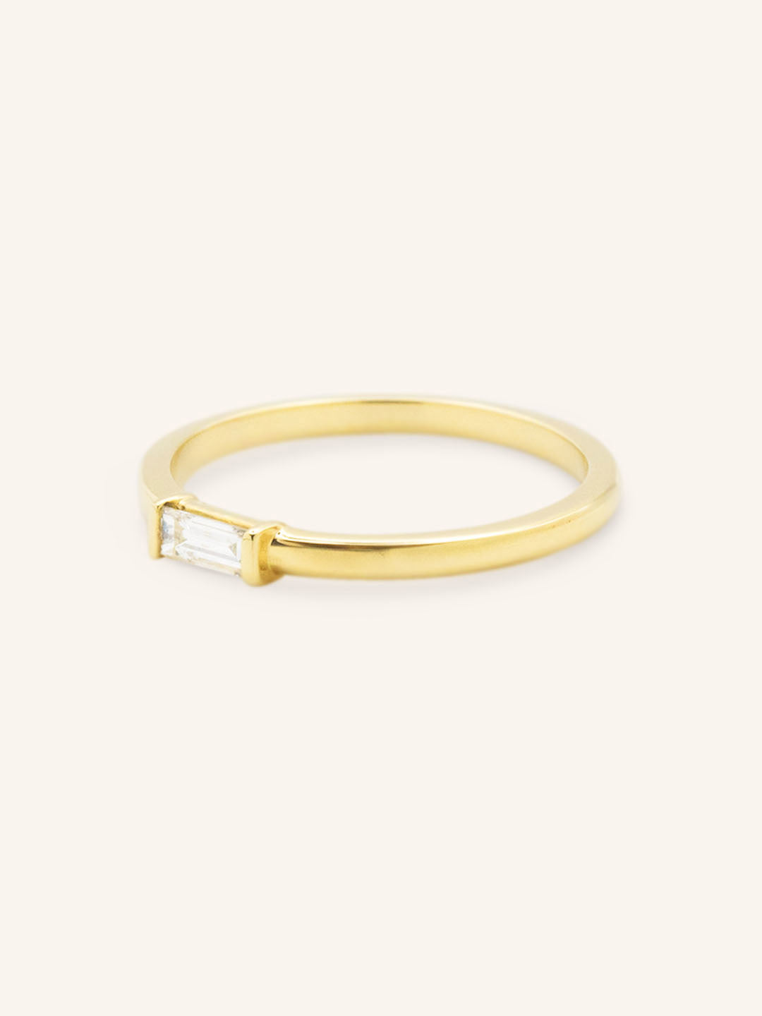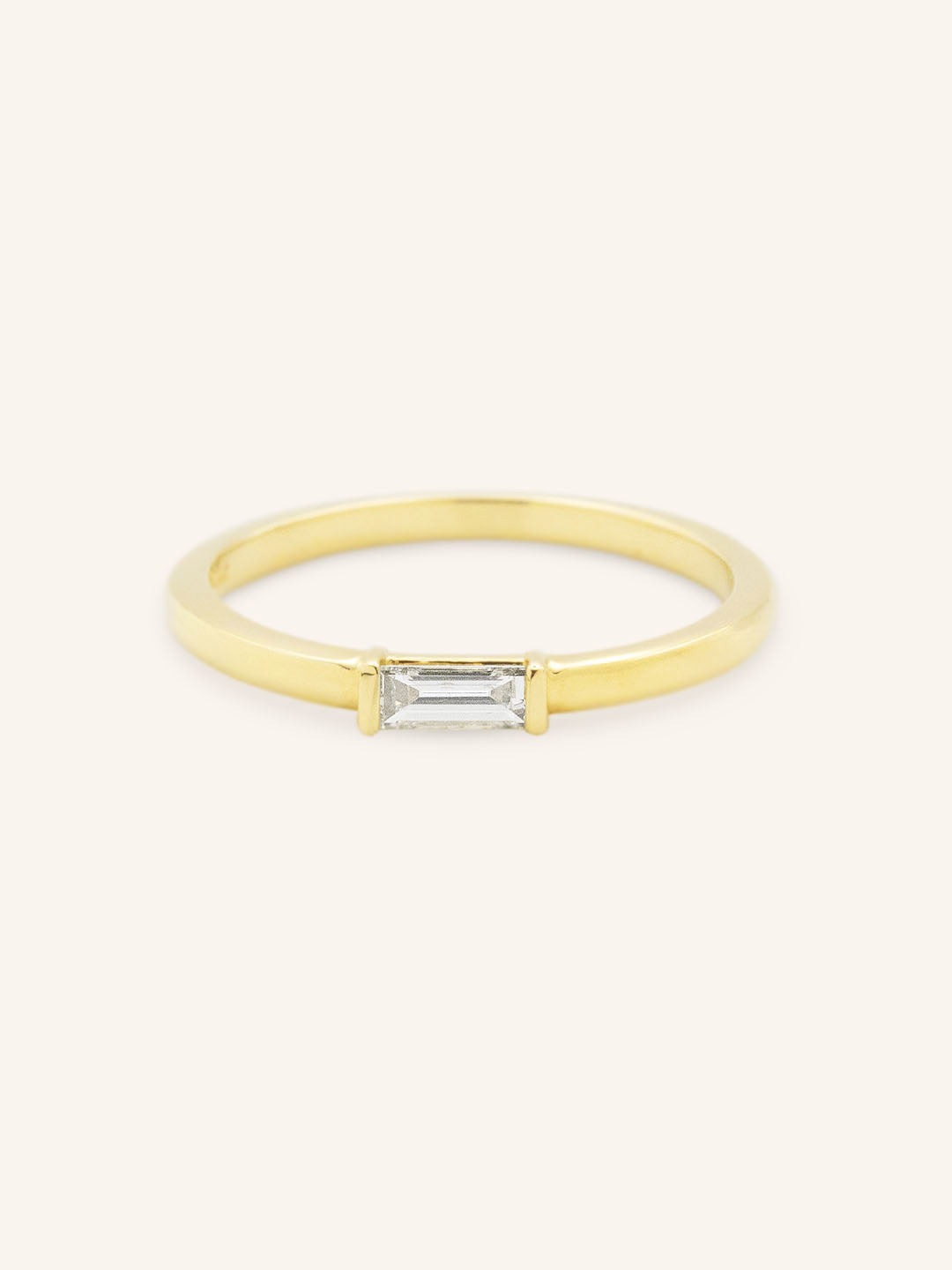 The Newport Straight Baguette Diamond Ring is a minimalist yet sophisticated design, featuring a single straight baguette set on a sleek gold band. Its clean lines and modern aesthetic make it perfect for stacking or wearing alone for a subtle touch of elegance. A timeless piece that blends simplicity with refined beauty.
