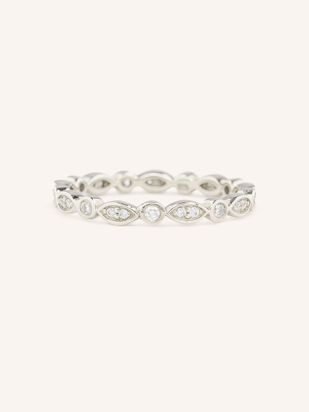 The Nicole Diamond Blend Eternity Band brings a unique twist to a classic design, featuring alternating round and marquise-shaped settings, each holding brilliant round diamonds. A graceful balance of shape and sparkle, this band is a refined symbol of everlasting love.