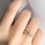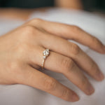 All of our engagement rings feature natural, lab-grown diamonds, and/or moissanites. They are ethically sourced and hand-selected for their quality and brilliance. Each product page specifies the stone type.