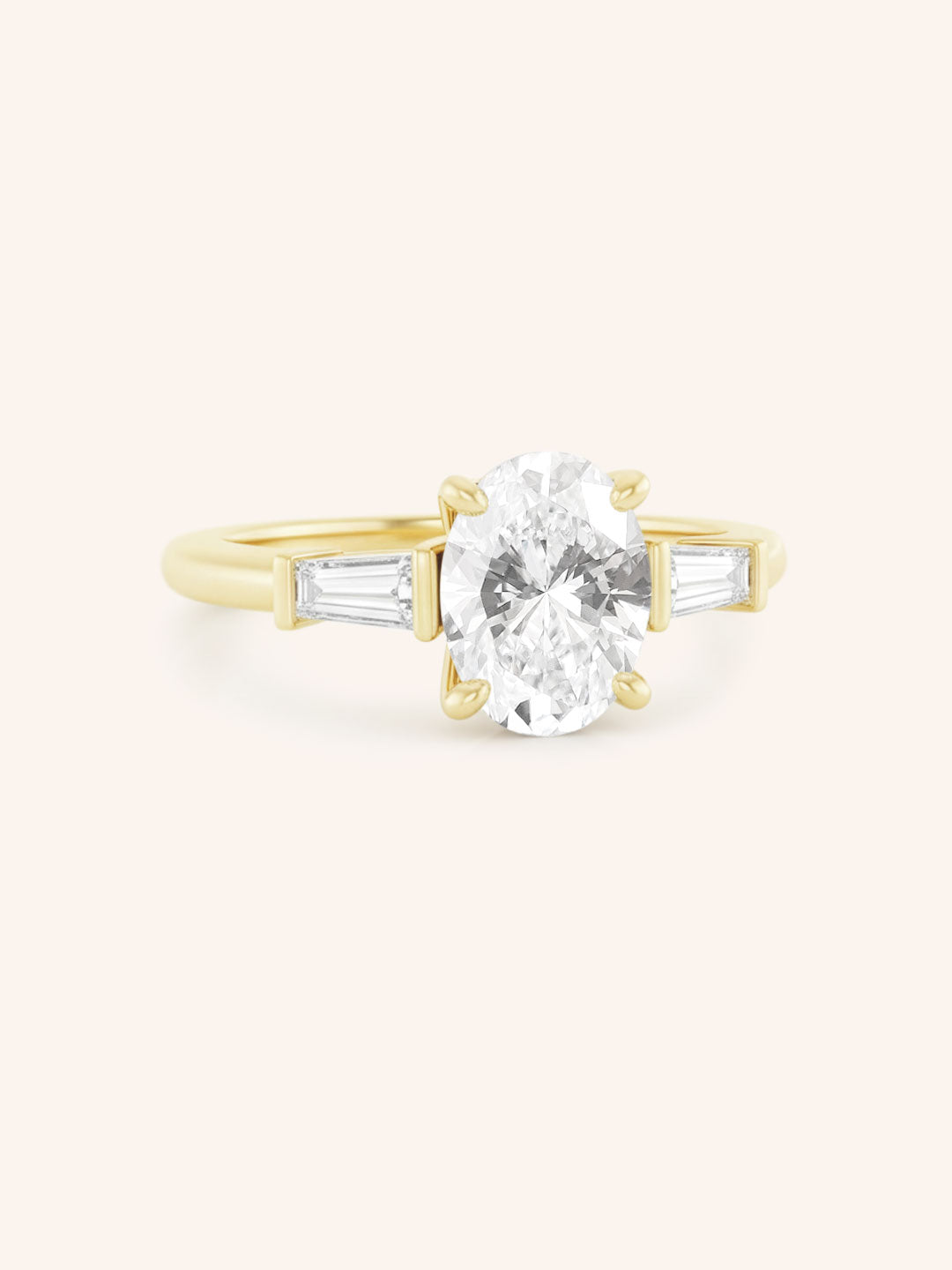 Stately Manor Oval Diamond Tapered Baguette Three Stone Engagement Ring