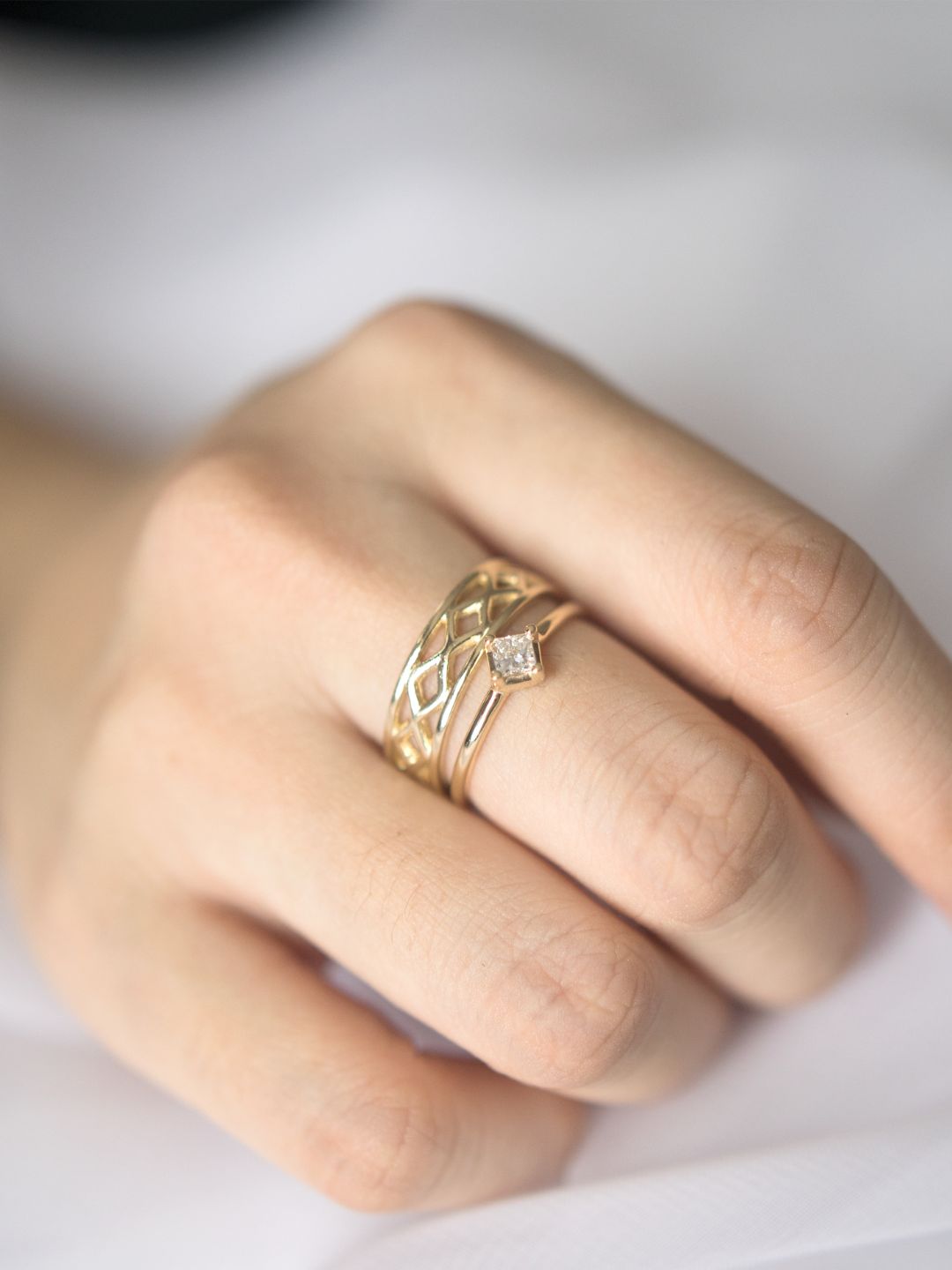 The delicate tale of a weaved life. The Stay Cozy Basket Weave Ring is crafted out of solid 14K gold for maximum durability. It features delicate criss-cross patterns making it a stunning contemporary wedding band.