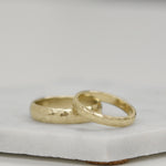 Sealing a partnership that will last a lifetime is a huge and welcome change. Celebrate it with a timeless wedding ring with a half-round edge giving it a classic and comfortable design. Uniquely hammered by hand, giving it a textured finish and character. Hand hammering creates organic facets that catch the light in such a beautiful way. Made with solid 14K gold, this band is the perfect wedding ring to mark the happy occasion.