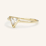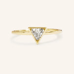 Illuminate from within. The Primrose White Sapphire ring is a minimal ring that keeps eyes on you. It features a radian trillion sapphire on a solid gold band - an essential everyday piece.
