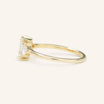 Enjoy life with a summer romance that makes you blush and giggle with glee. The Summer Triangle Emerald Engagement ring takes you back to a moment that you will cherish forever. It is a classic piece with a lower profile that features emerald-cut moissanite with a pair of trillion moissanite to bring the sparkle up.