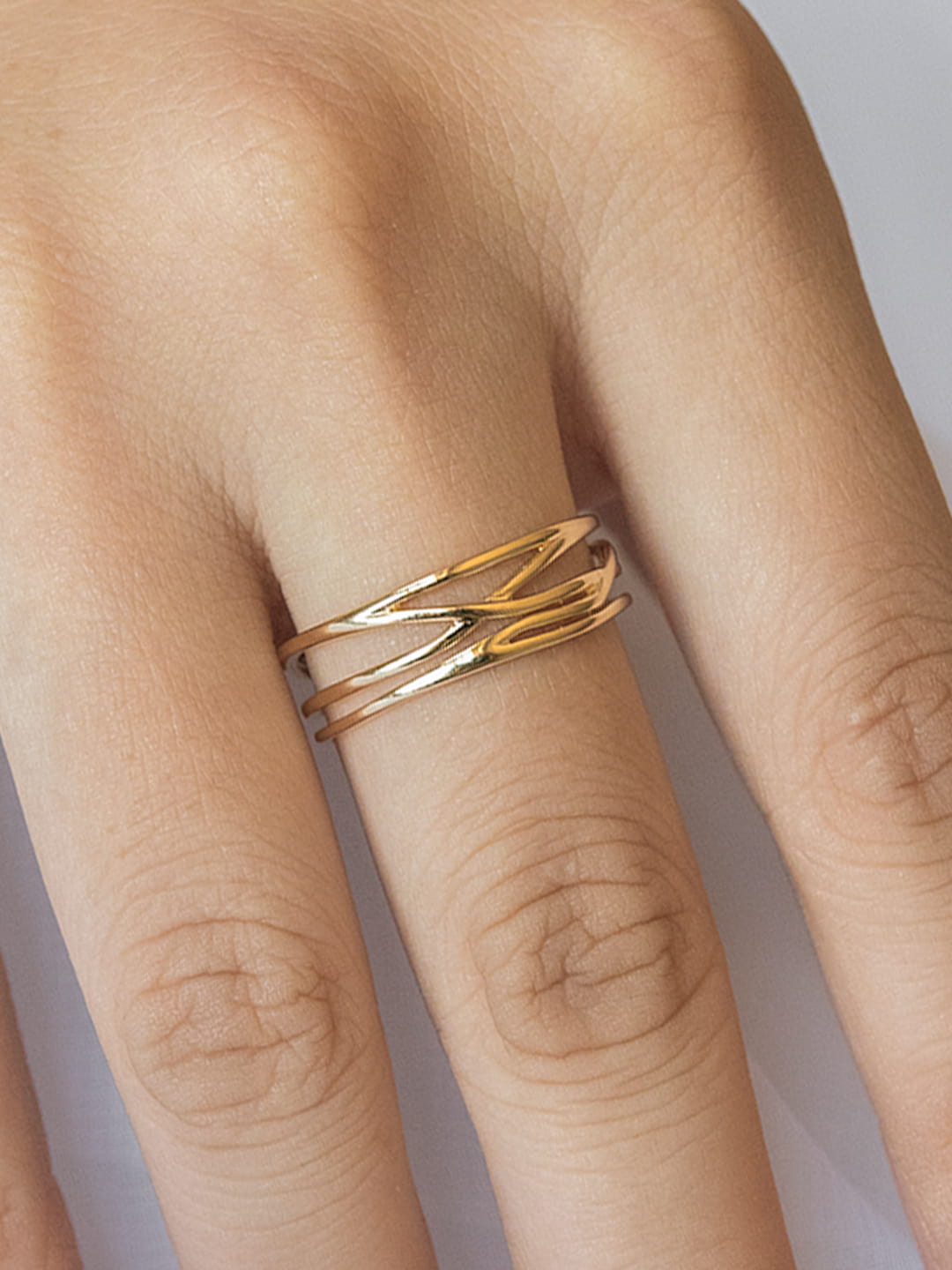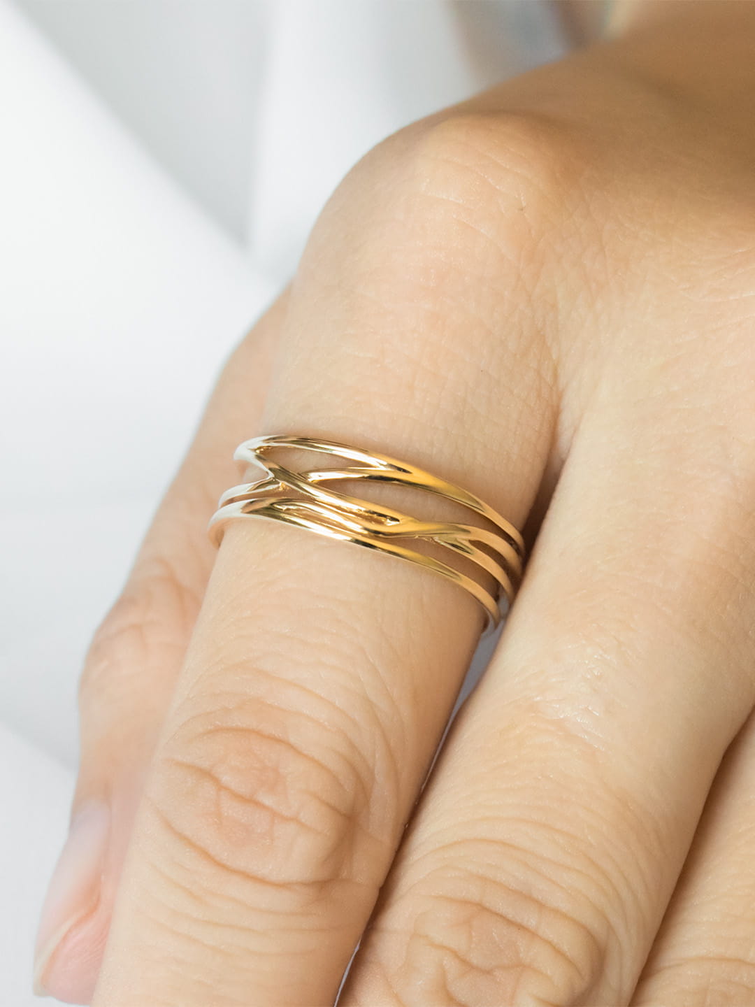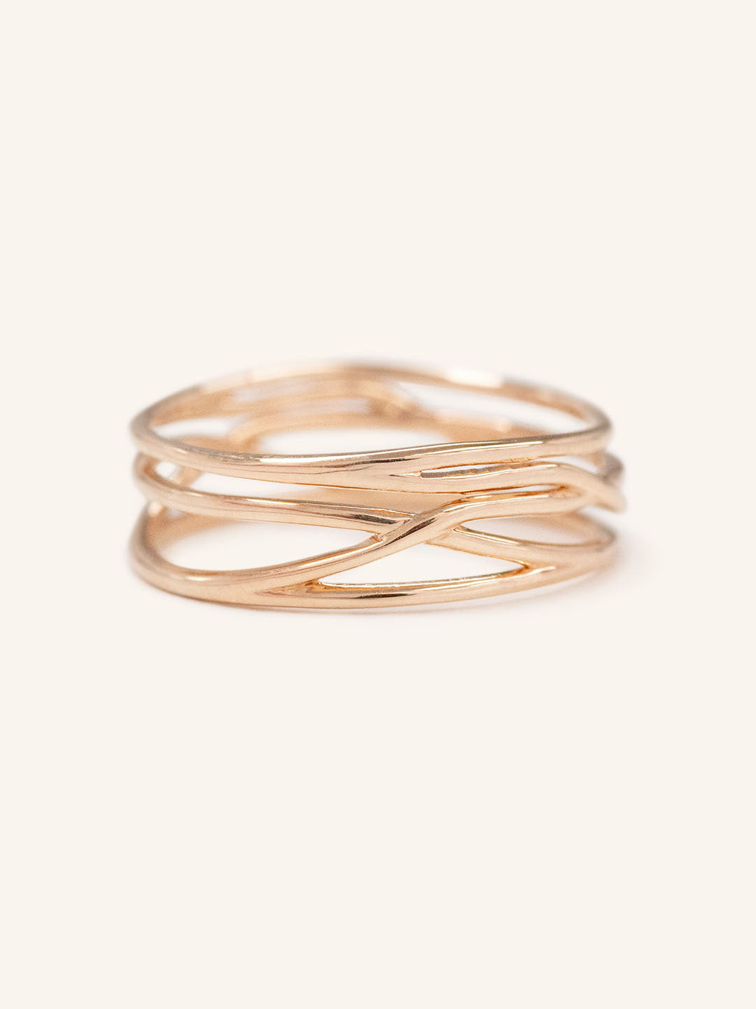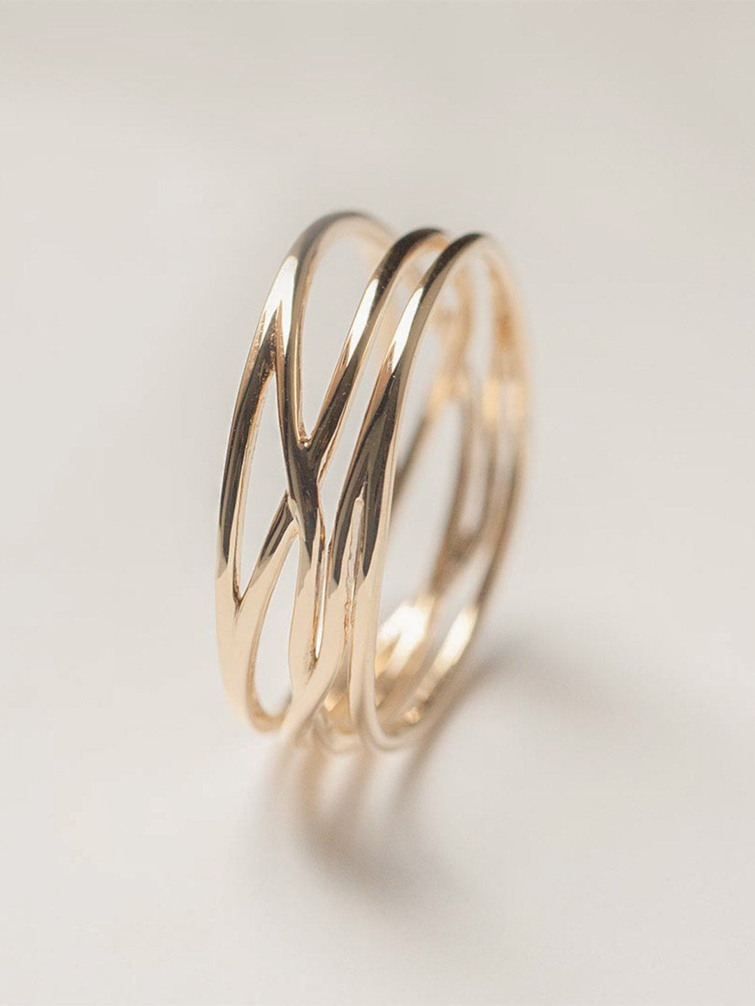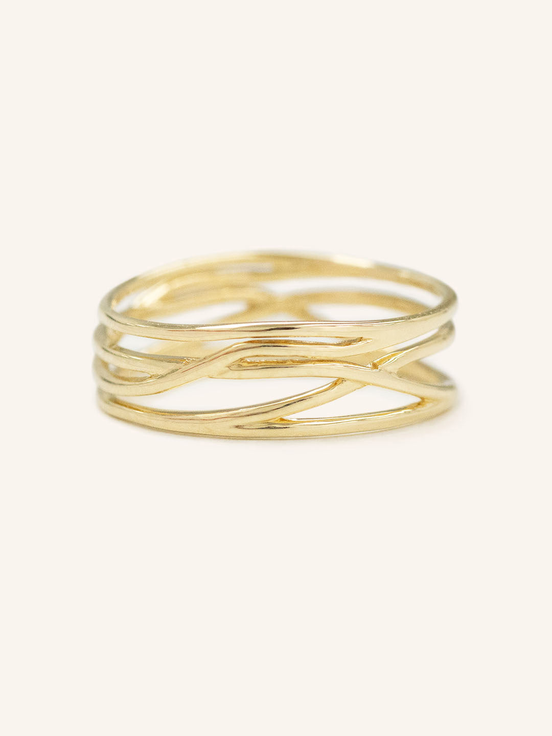 A modern and timeless take on the classic wedding band. The Twisted Vine Ring is crafted out of solid 14K gold. It is a twisted wide ring with a delicate entwined design to make it a contemporary wedding band.
