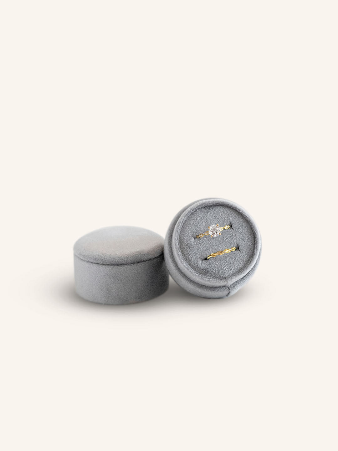 This double ring box is covered in soft velvet and features two slots to securely hold two rings in place.