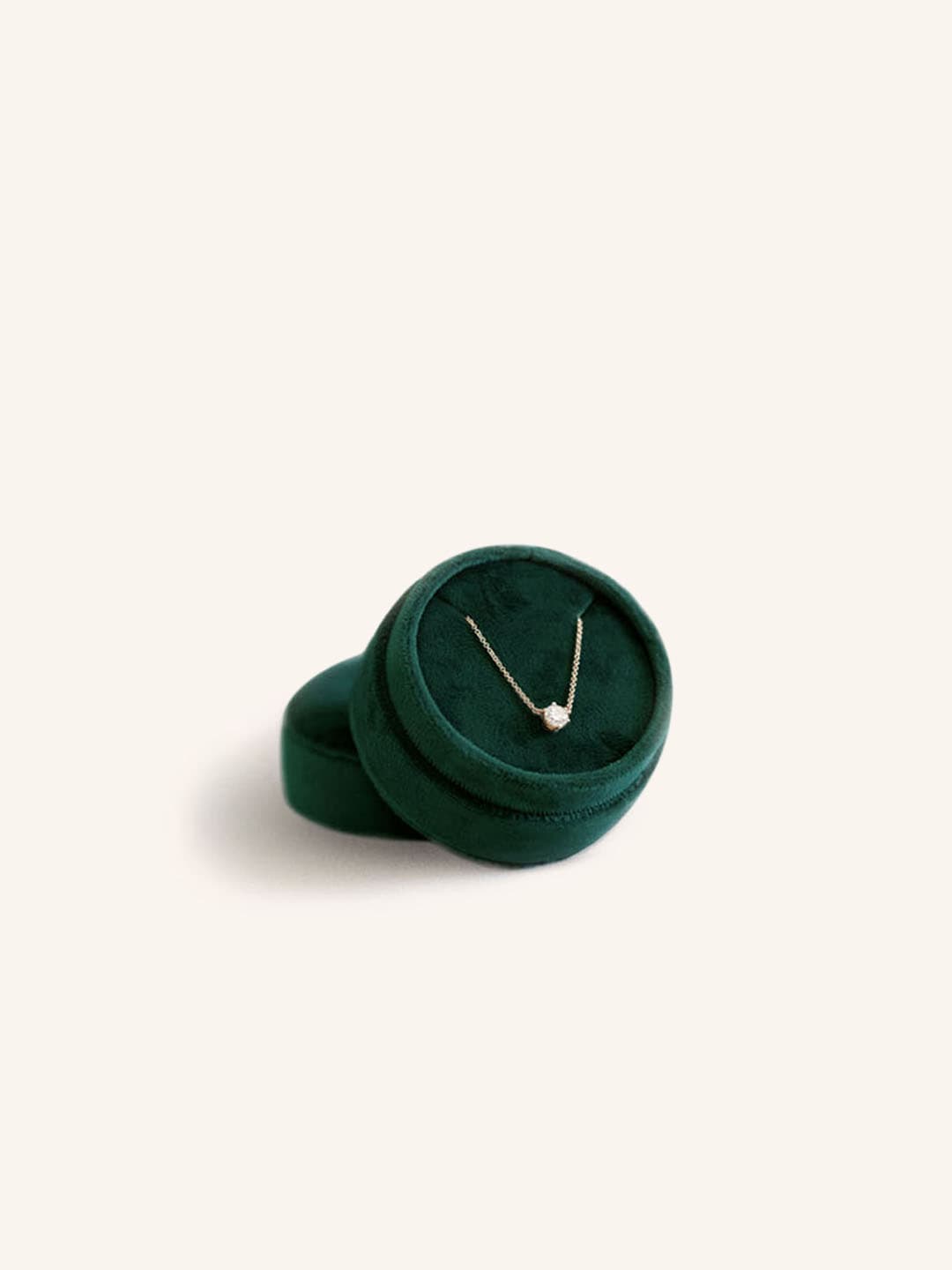 This elegant circle necklace box is made of luxurious velvet and comes in a sleek color. It is the perfect accessory to store and protect your beautiful necklaces while adding a touch of class to your décor.