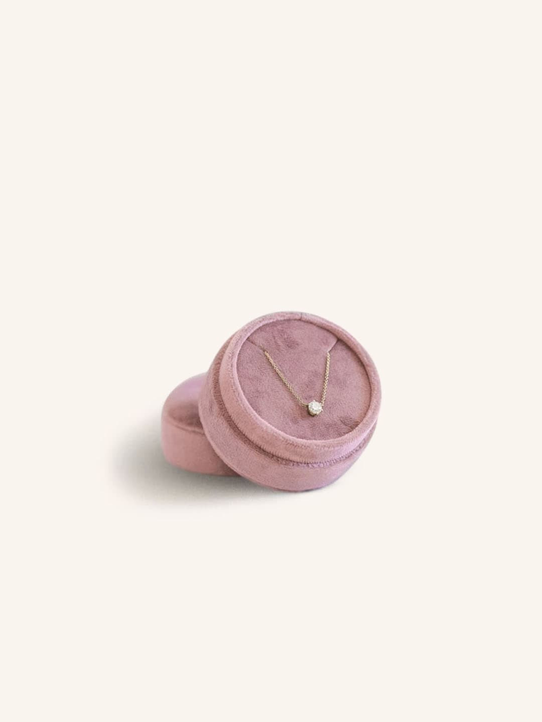 This elegant circle necklace box is made of luxurious velvet and comes in a sleek color. It is the perfect accessory to store and protect your beautiful necklaces while adding a touch of class to your décor.
