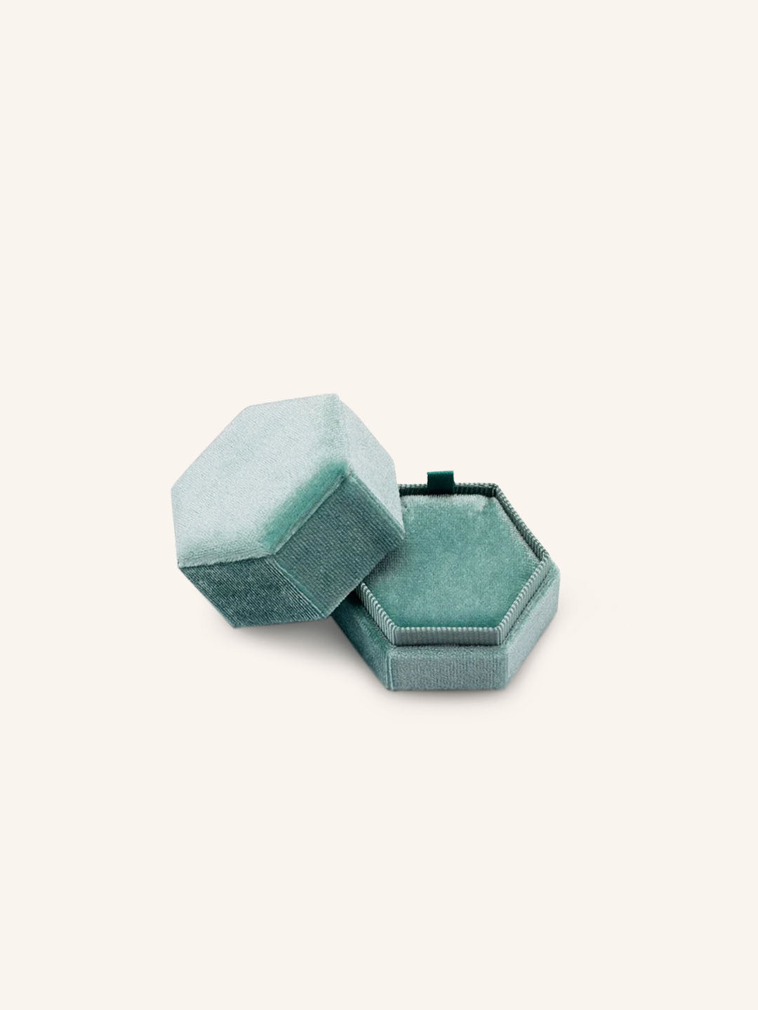 The Velvet Hexagon Pendant Box is a refined home for your most treasured necklace or pendant. Featuring a plush velvet exterior and a striking hexagon design, it offers a luxurious and unique presentation. Perfect for safekeeping or gifting, this box adds a timeless and elegant touch to any cherished piece.