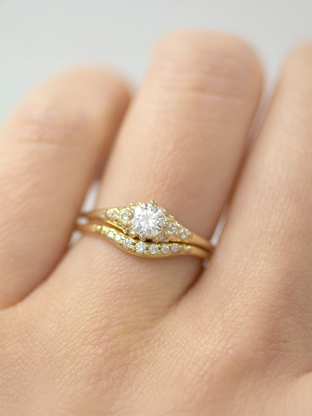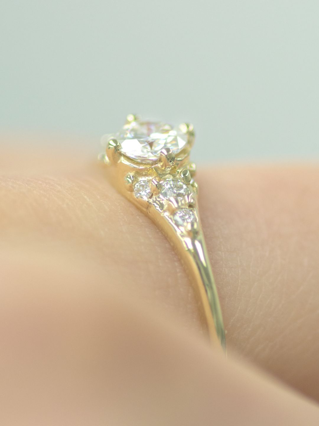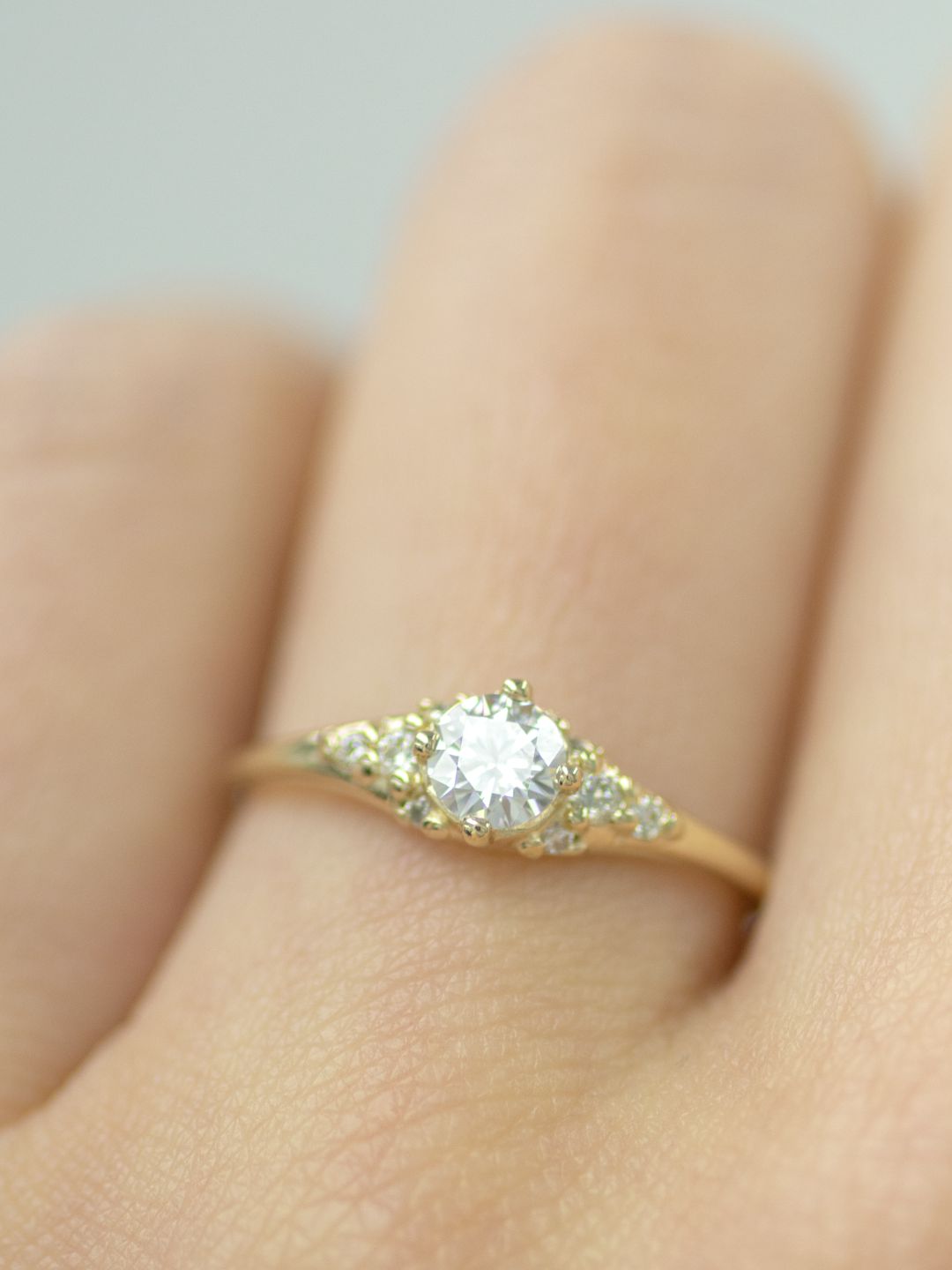 All of our engagement rings feature natural, lab-grown diamonds, and/or moissanites. They are ethically sourced and hand-selected for their quality and brilliance. Each product page specifies the stone type.