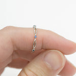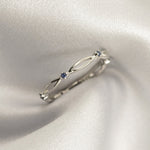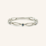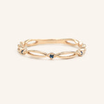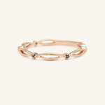 A dainty everyday essential to your lookbook. This stackable ring enhances your outfit from day to night. It is a gorgeous stackable ring that features five round blue sapphires evenly spaced out between open braids - a gift that you deserve.